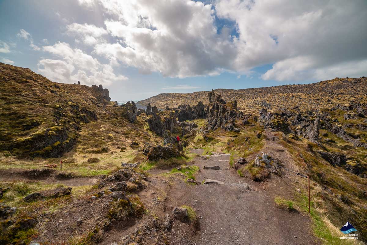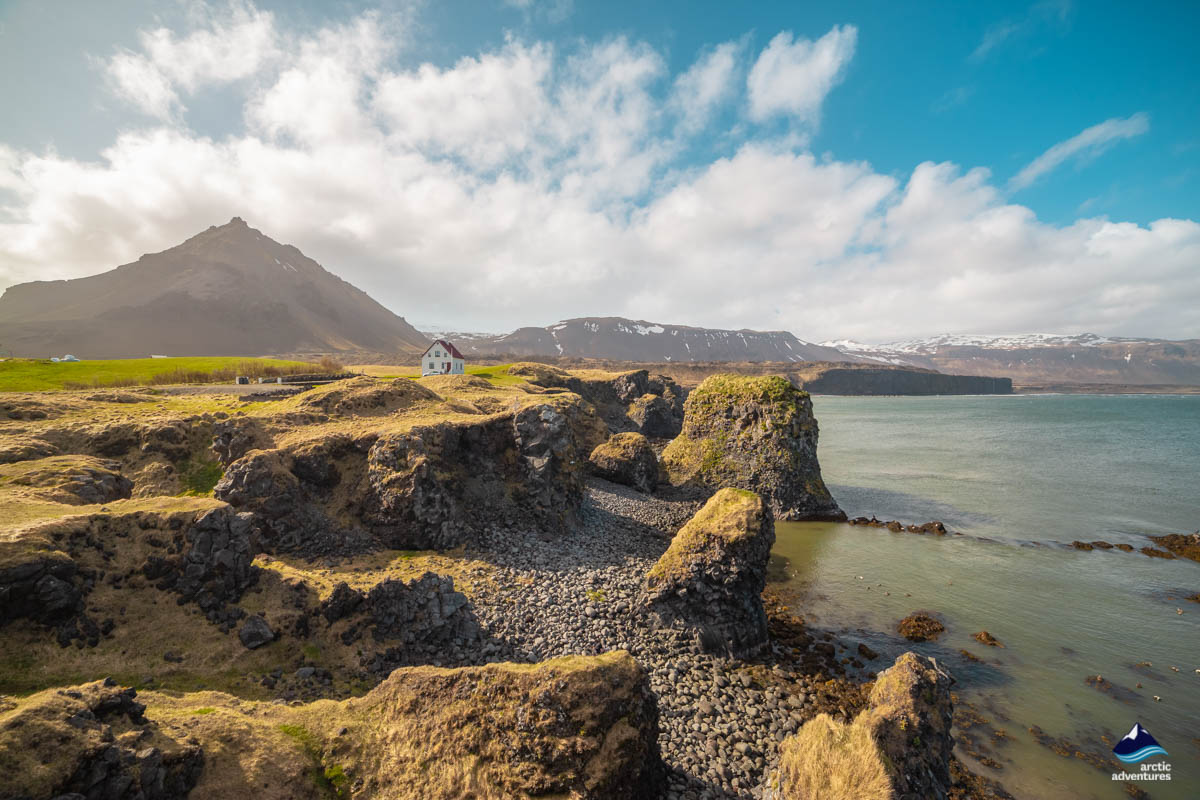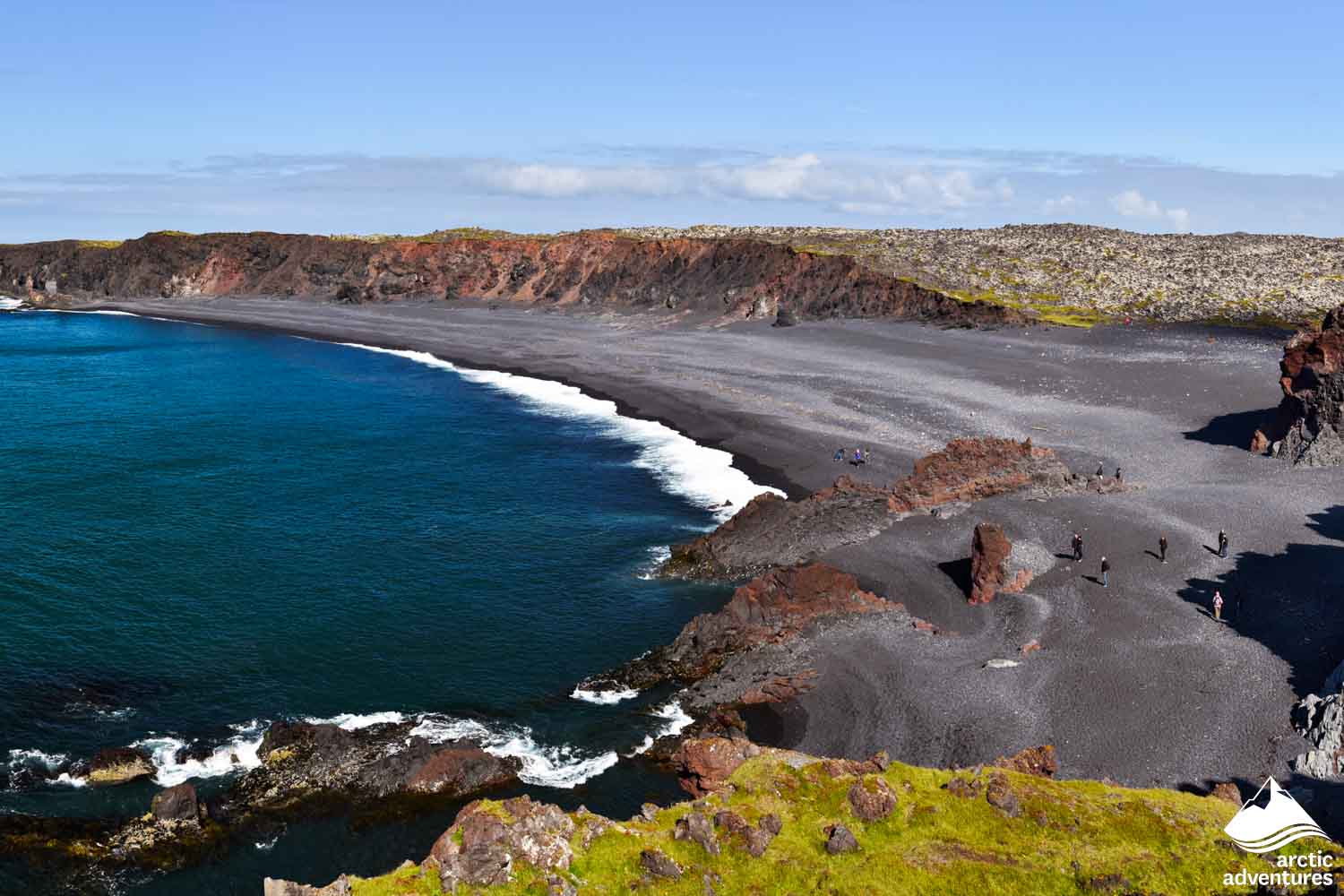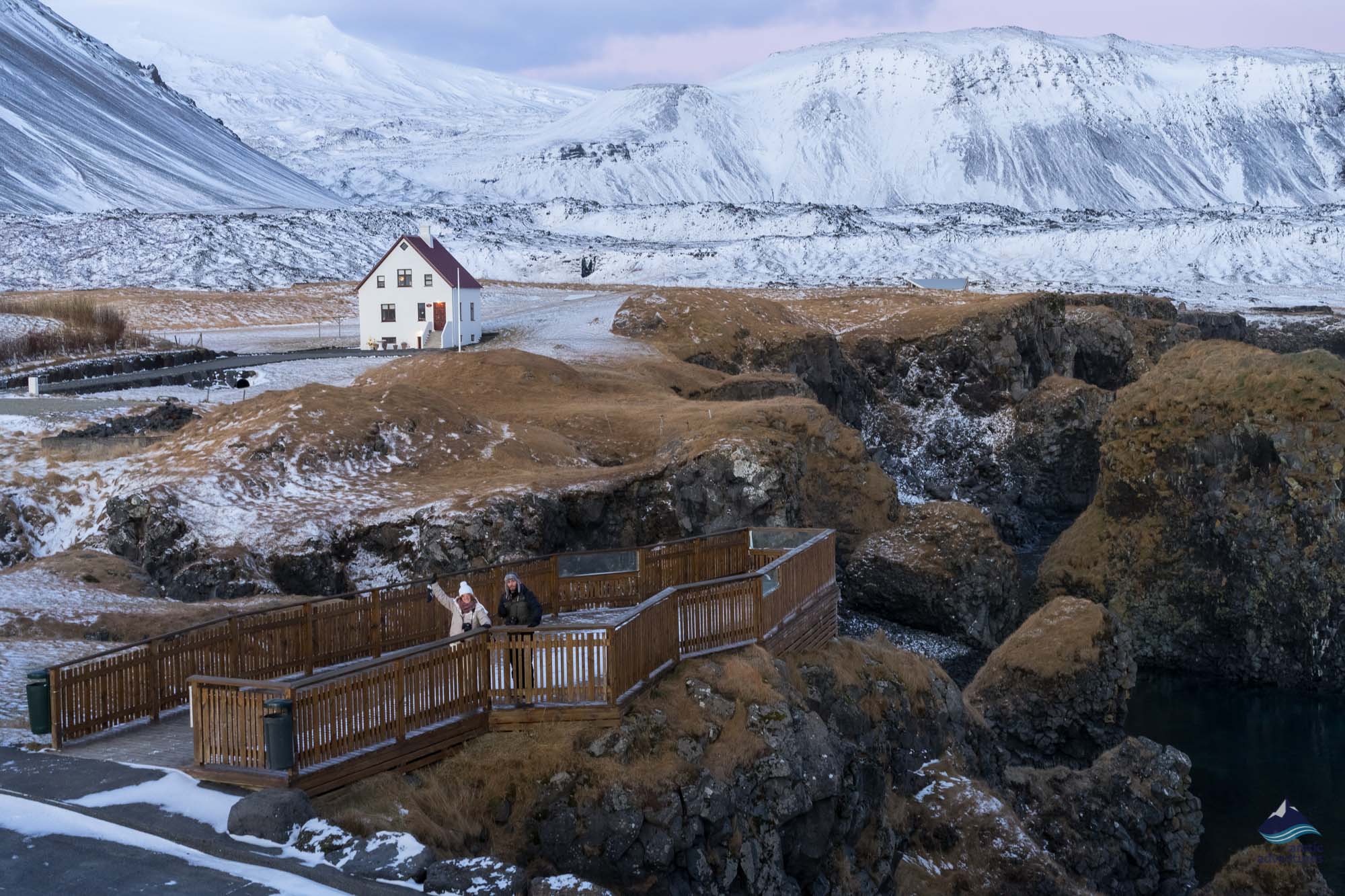 La Peninsule de Snæfellsnes est connu pour avoir une faune colorée et abrite de nombreux oiseaux et phoques. Pour regarder de plus près, nous ferons un arrêt à la belle plage noire près de la ferme Ytri Tunga , un des endroits préférés des phoques locaux. Ensuite, nous visiterons le village pittoresque de Arnarstapi. Il y a peu d’endroits dans le monde qui sont aussi charmants que cet endroit et ici nous ferons une promenade le long de la côte. C’est ici que nous prendrons une pause pour déjeuner.