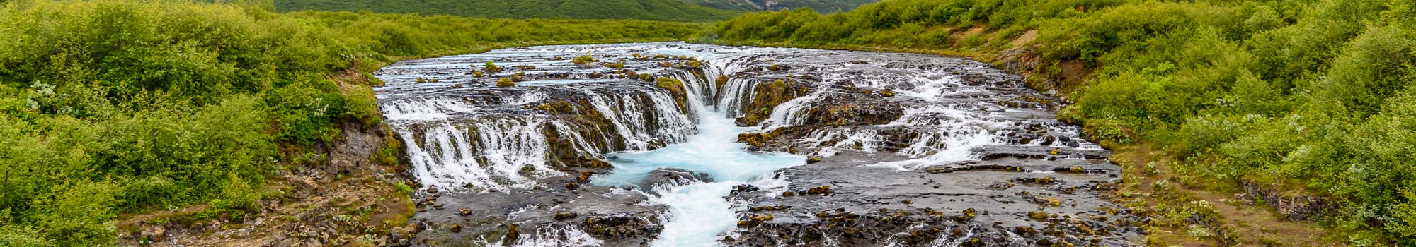 The name of Brúarfoss translates as “Bridge-waterfall” and derives the title from a natural stone arch which formerly crossed the river, acting as a bridge.