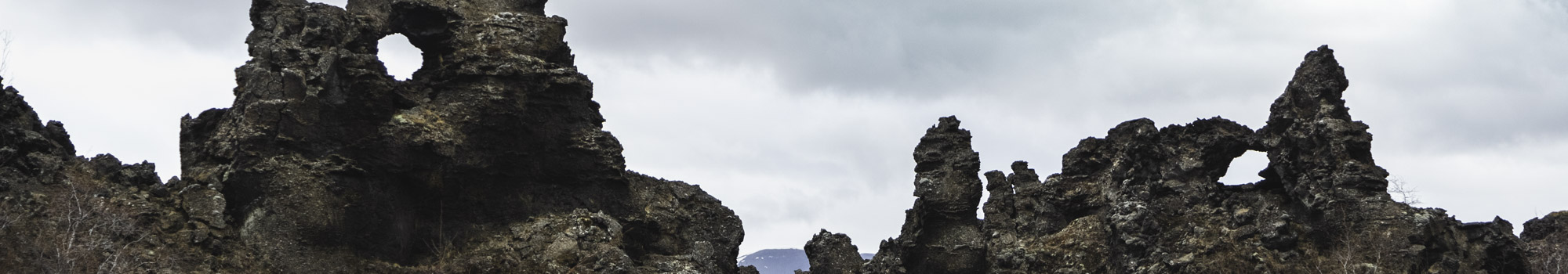Dimmuborgir is distinguished by large yet hollow lava chambers that formed around the bubbles of the vapor and the towering rock pillars. These rock formations combined make up the most enchanting scene. Some lava pillars are only the height of a foot but others seek many meters into the sky.