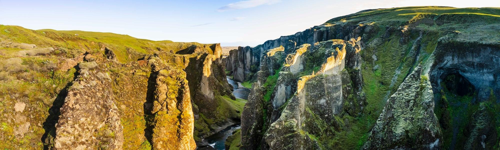 Fjadrargljufur can be visited all year round (no tickets required). It offers activities for both leisurely and active visitors. A short walk from the upper parking to the main canyon’s viewpoint is perfect for those seeking a relaxed experience. Once there, a flat path leads to the vantage point with a breathtaking canyon panorama. The longer Fjadrargljufur Canyon hike begins at the lower car park and stretches for the entirety of the canyon’s length.