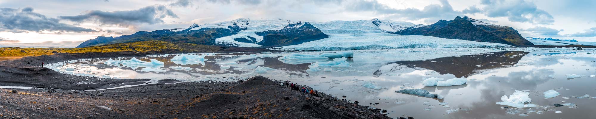 Fjallsárlón sits in the shadow of Fjallsjökull Glacier, an outlet of the largest glacier in Europe, Vatnajökull. Icebergs break away from the glacier and float on the surface of the glacial lagoon below. Unlike Jökulsárlón, Fjallsárlón is not connected to the sea. This means the icebergs stay there until they melt.