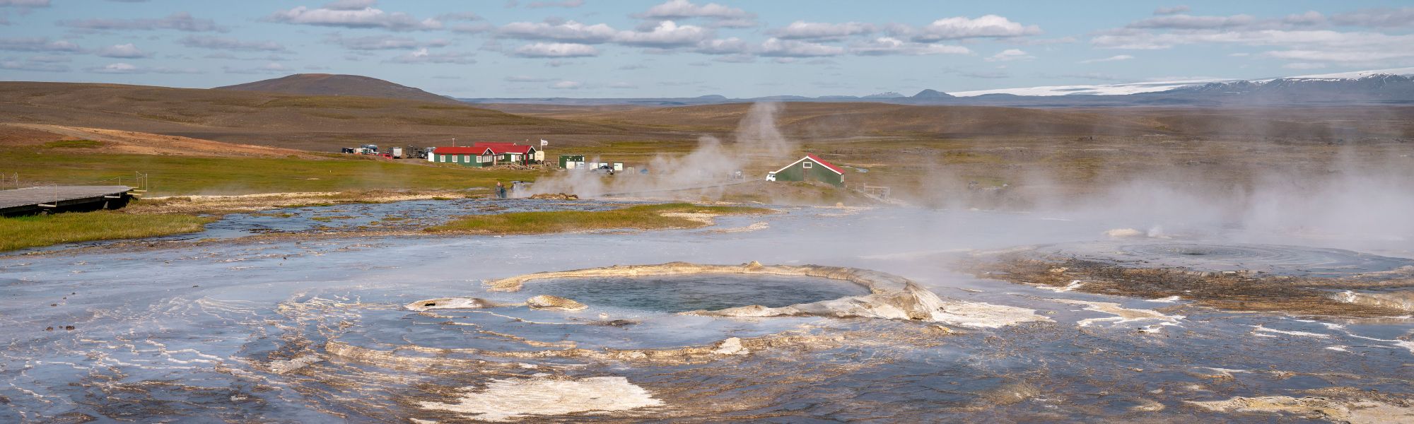 Nested between two large glaciers, Langjökull and Hofsjökull, is Hveravellir Nature Reserve. Also known as the Hot Spring Fields, the Hveravellir geothermal area is a great place to be in nature. Located in the central highlands, the area sits 650 meters above sea level. Hot pools, lava fields and hiking trails are all part of a visit to Hveravellir.