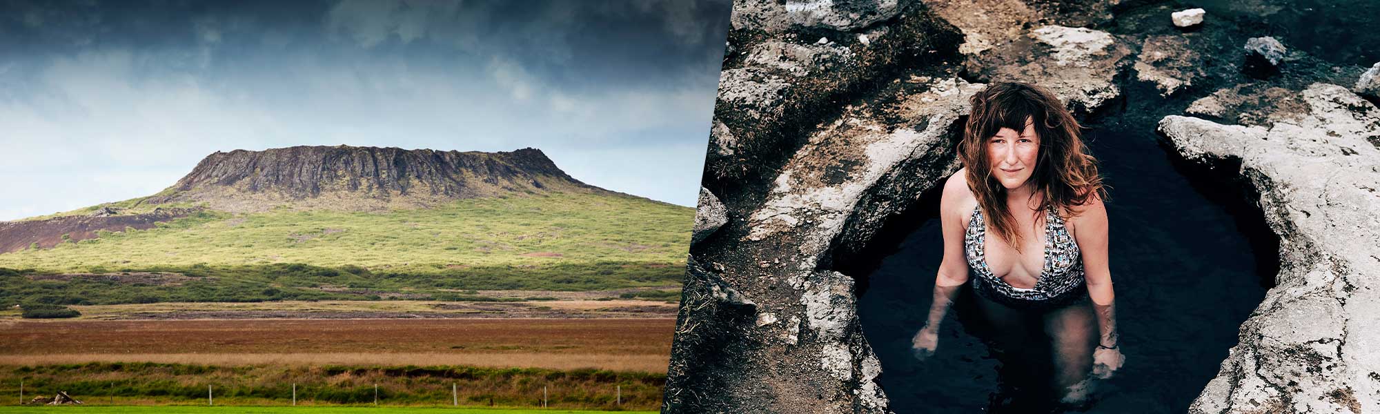 Woman bathing in Landbrotalaug hot spring