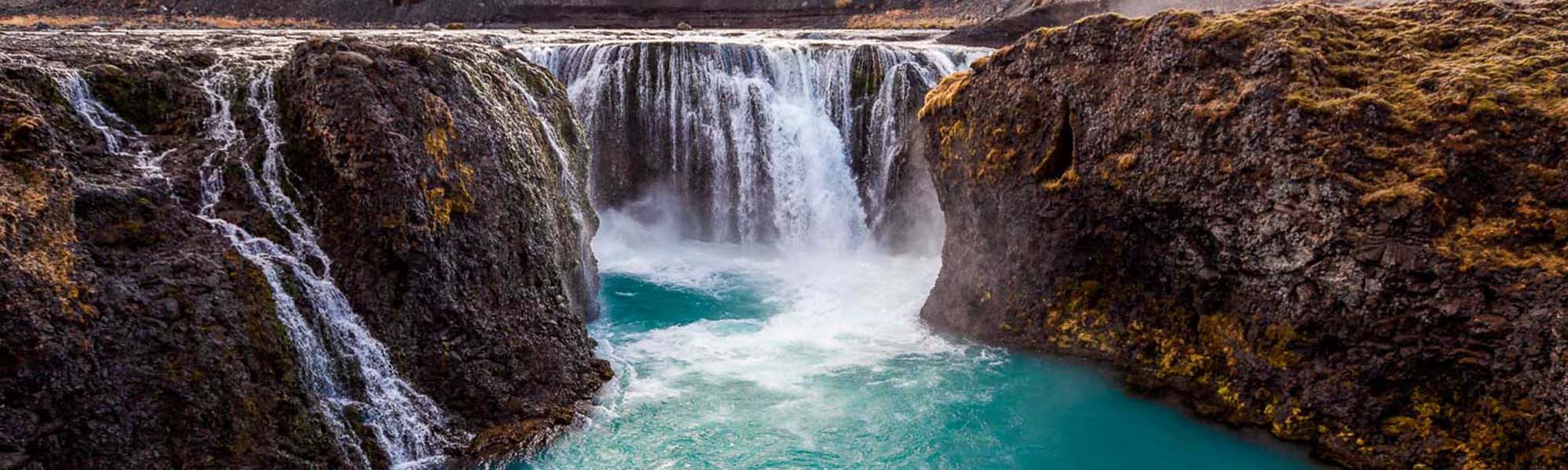 Sigoldugljufur offers a panorama so beautiful that it reminds you of ancient Greek artworks. The turquoise Tungnaá River, countless waterfalls, and vibrant flora will fill your sight with awe.