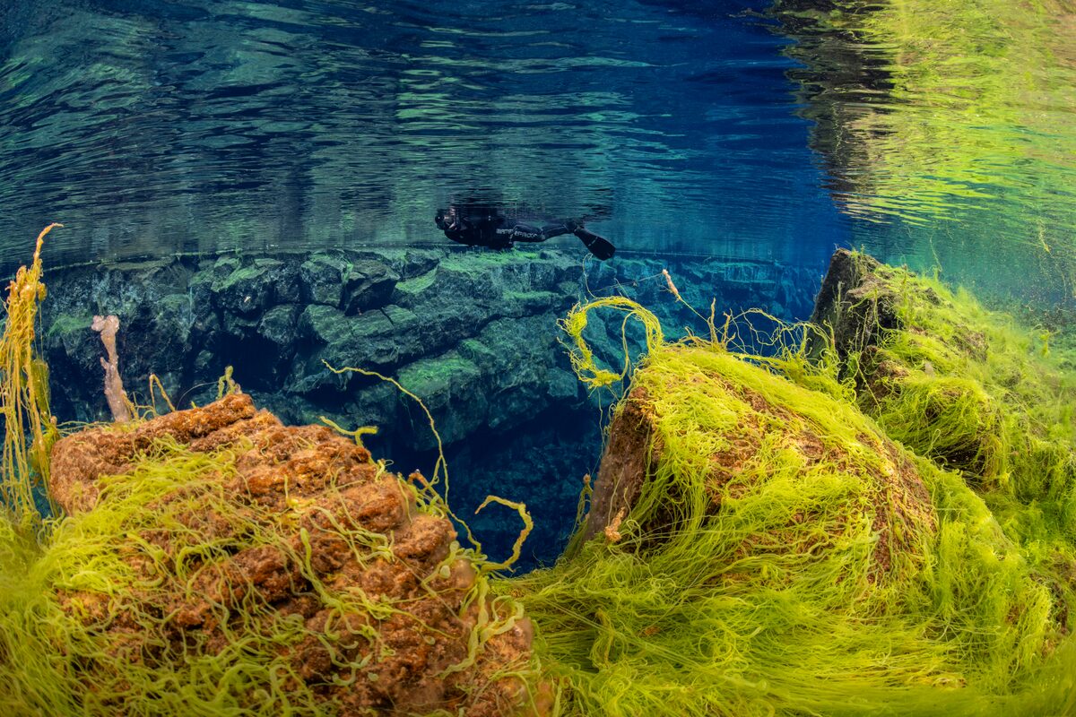 Snorkeling and diving are the best ways to experience Silfra’s underwater landscape.