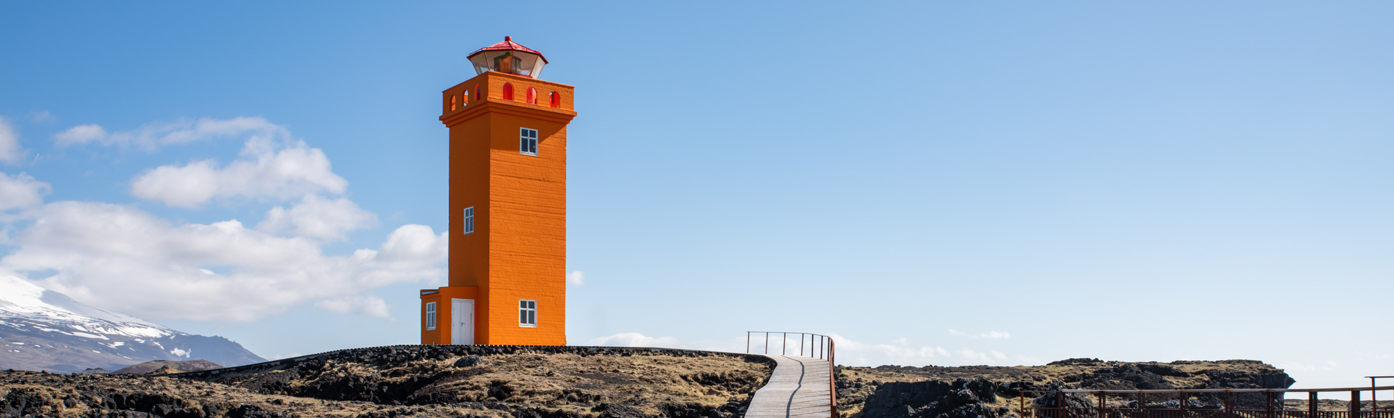 For the picturesque views, of course! With mountains as the backdrop, surrounded by black lava cliffs and fields with olive-green moss, at a point where it looks like the blue sea and sky merge, this bright orange lighthouse stands tall and vibrant. Marvel the work of architecture that dates back to 1913 along with the spectacular views over the western coast. Bird watching is one of the popular activities here, and you'll find a viewing panel set up to observe the cliff-dwelling seabirds. If you are lucky, you'll spot Brünnich's guillemot and European shag. If you are visiting Iceland during the summer months, be sure to get to the lighthouse and look for Harlequin duck at sea and the killer whales that are also known as orcinus orca.