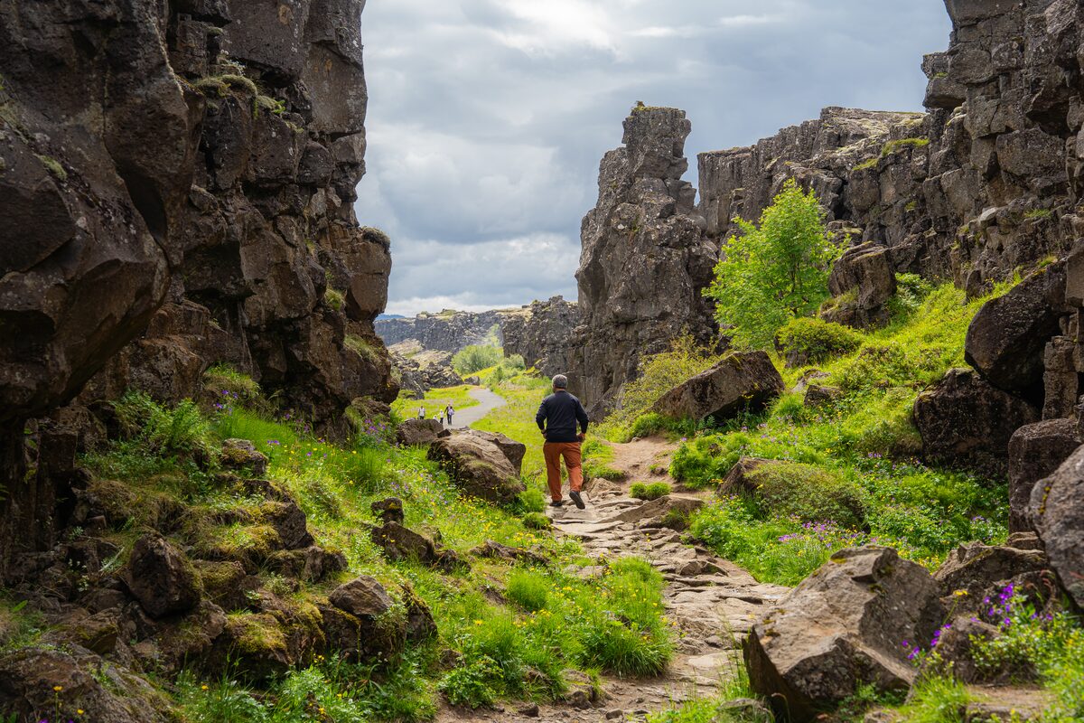 The Golden Circle Route begins with Thingvellir National Park, a UNESCO World Heritage Site famed for its rich history and fascinating geology. It plays host to Althingi, where a group of Icelandic nobles gathered together in 930 AD to convene the first Viking Parliament. The modern Icelandic Parliament still bears the same name, making it one of the world's oldest continuously running democratic institutions.