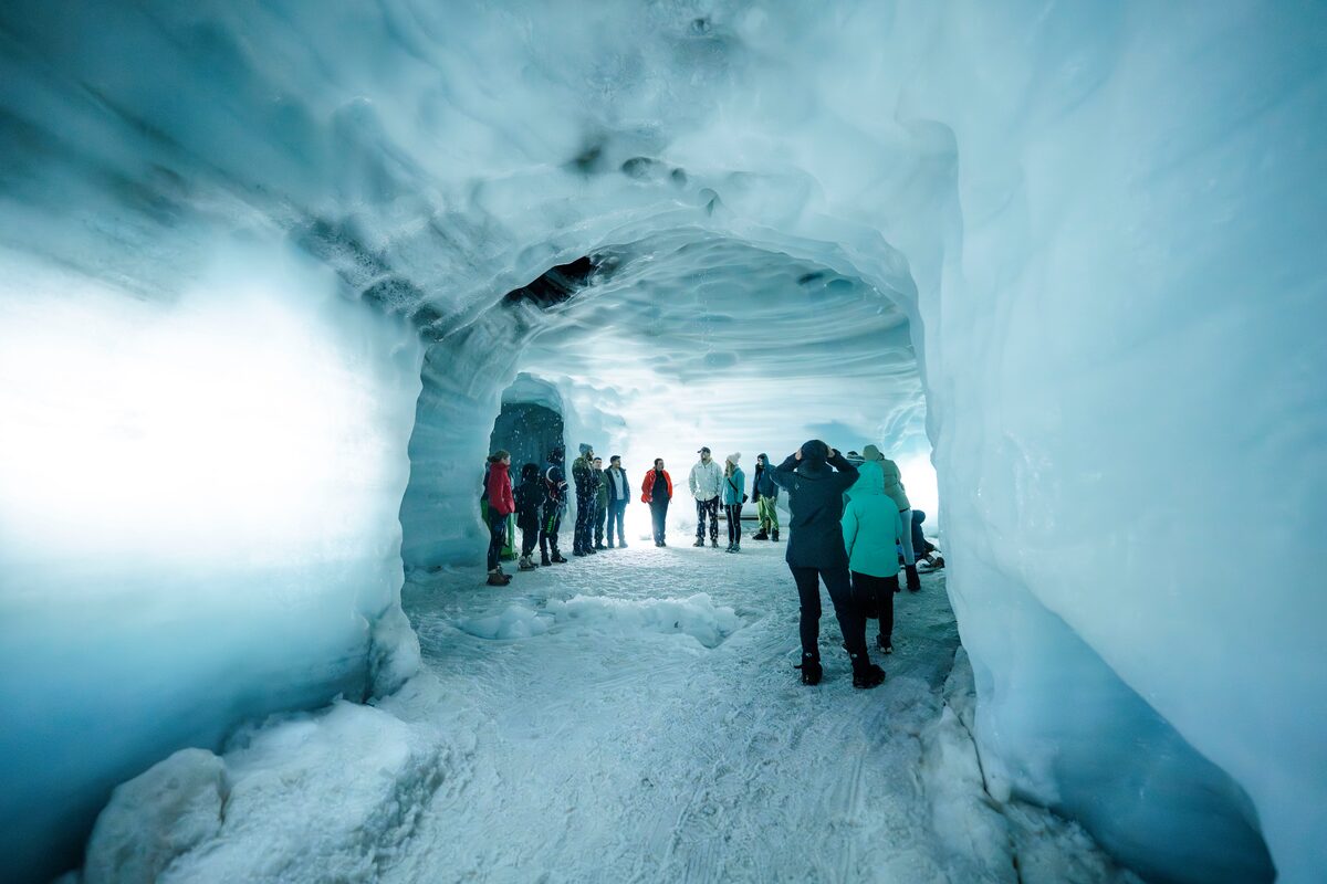 Soak in the changing volcanic scenery as you drive toward Langjökull glacier, just 2 hours from Reykjavík, to meet your expert guide at the Húsafell Activity Center at 10:00 AM (Please arrive 15 min early). From there, you’ll board the modified glacier truck that takes you straight to the entrance of the ice tunnel, with free Wi-Fi available on board during the ride.