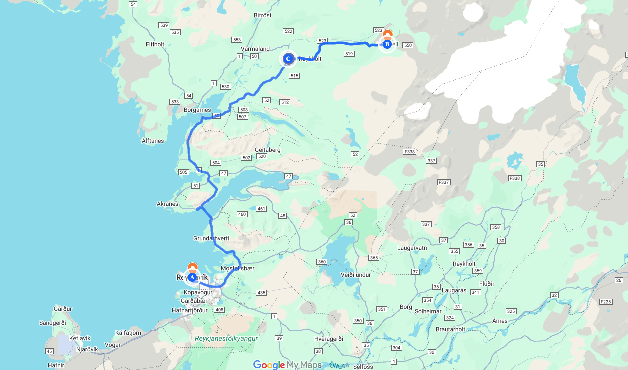Please note: All timings are approximate and depend strongly on season, road conditions, and weather on Langjökull.
