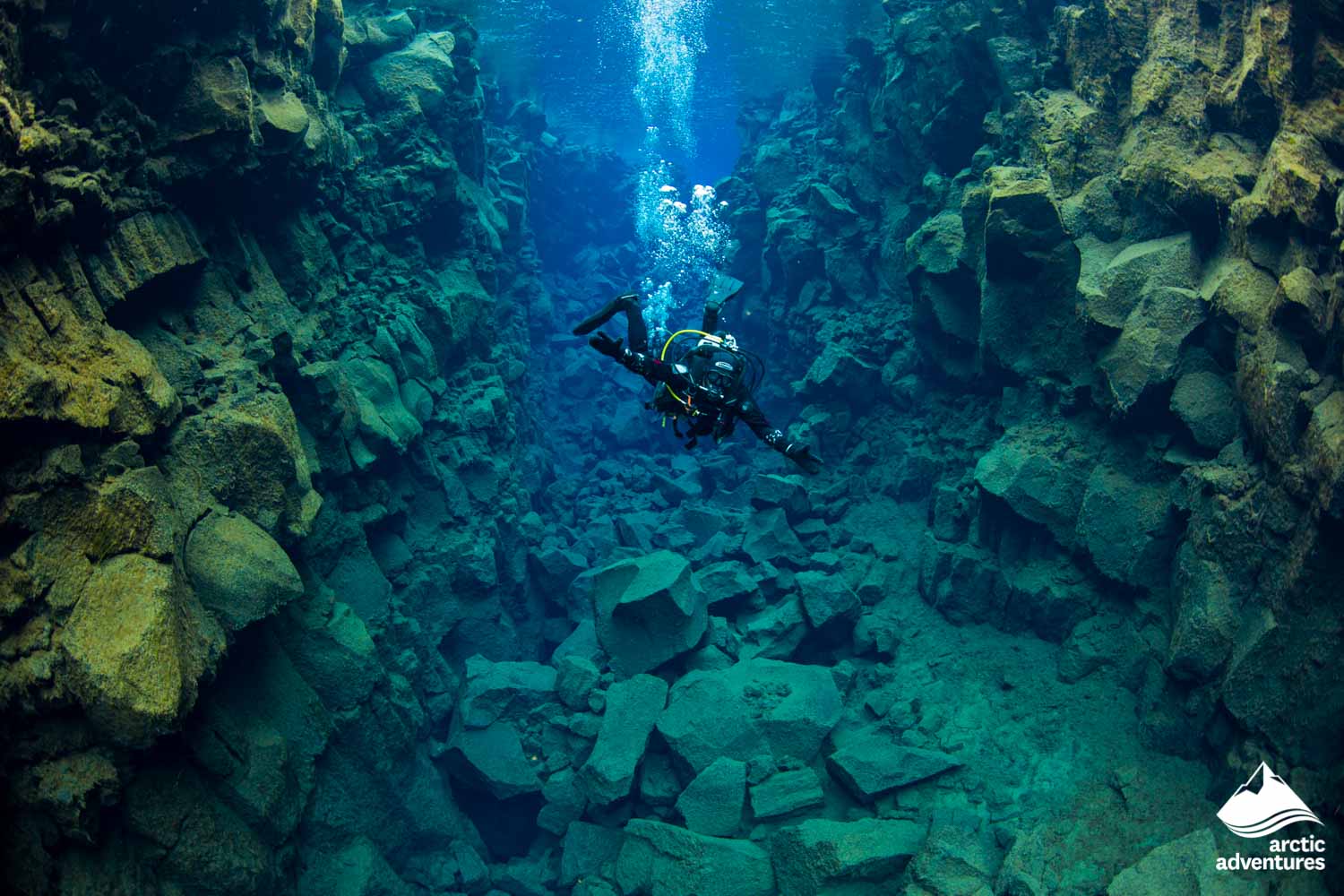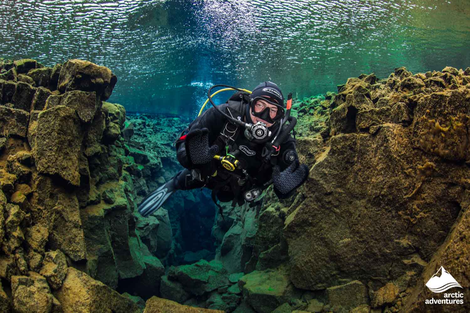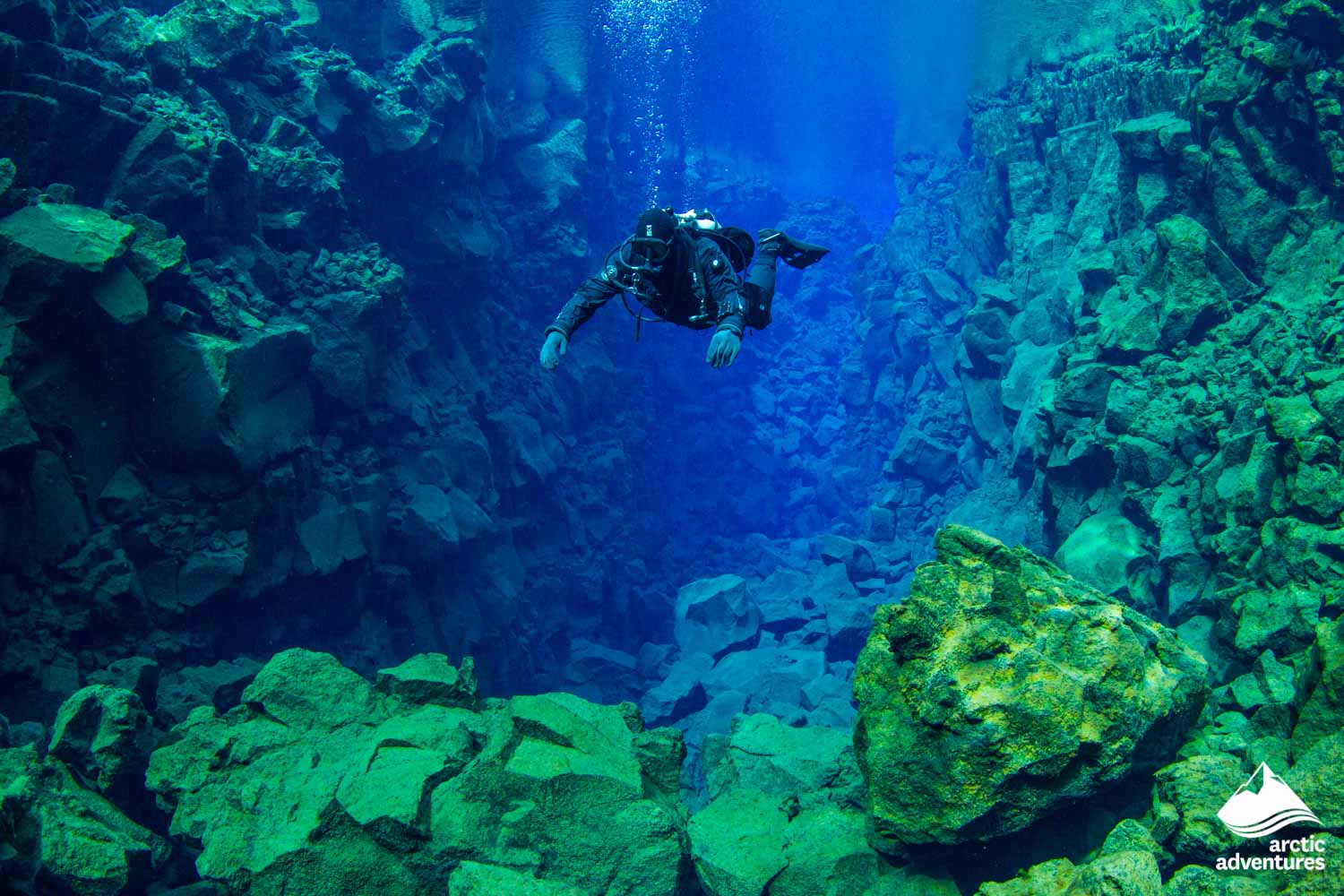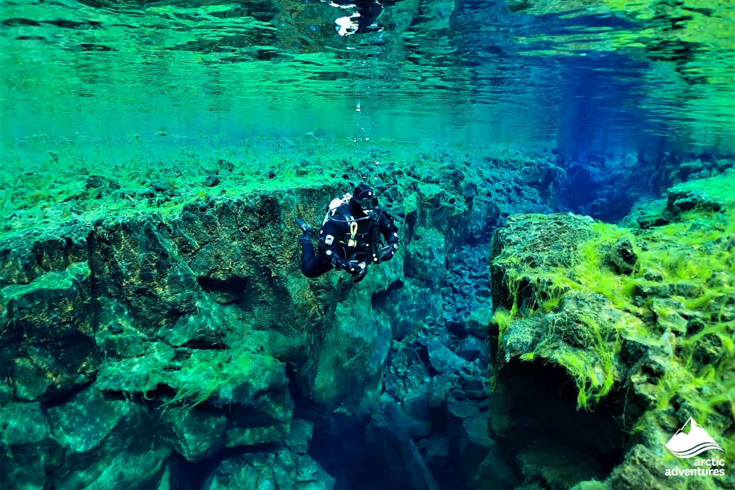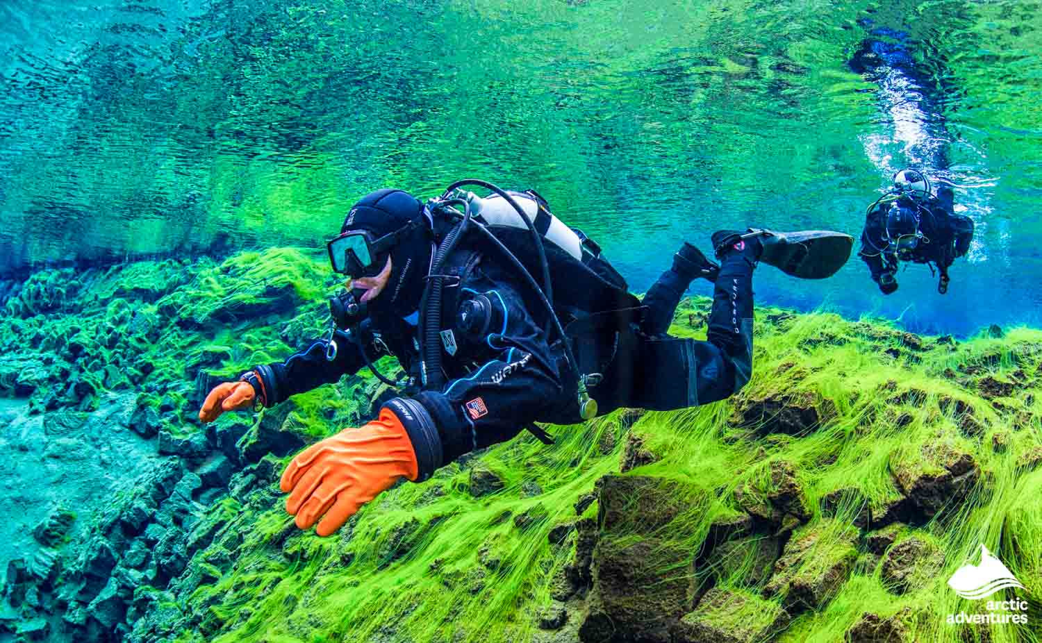 A diving tour located in beautiful surroundings at Thingvellir National Park. Once you’ve acclimatized to the glacial temperatures, explore all four sections of Silfra in the clearest water you’ve ever seen and witness ethereal underwater rock formations. Dive to 22 m (72 ft) at its deepest point in the Silfra Cathedral and finish the dive at the Silfra Lagoon, a stunning culmination of your Silfra scuba diving experience. See for yourself why Silfra is one of the world's most unique freshwater scuba sites. Diving doesn't get much better than this!