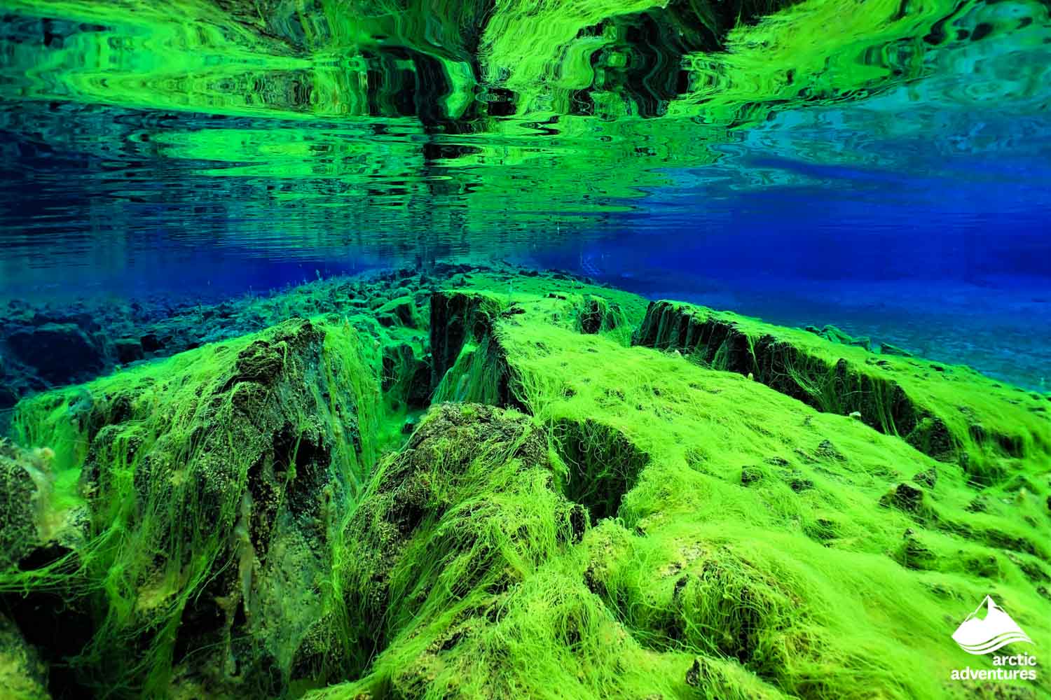 Sometimes fish venture into Silfra from Þingvallavatn lake, but they will quickly swim back, as they don’t like chilly glacier waters. However, there is plenty of colorful seaweed, including a bright green variety known as “troll hair”, which makes the fissure unlike anything on the surface.
