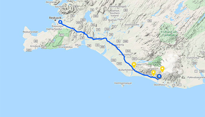 If you have chosen to meet us on location at Sólheimajökull Car Park. Distance from Reykjavik approx. 164 km / 101 mi.