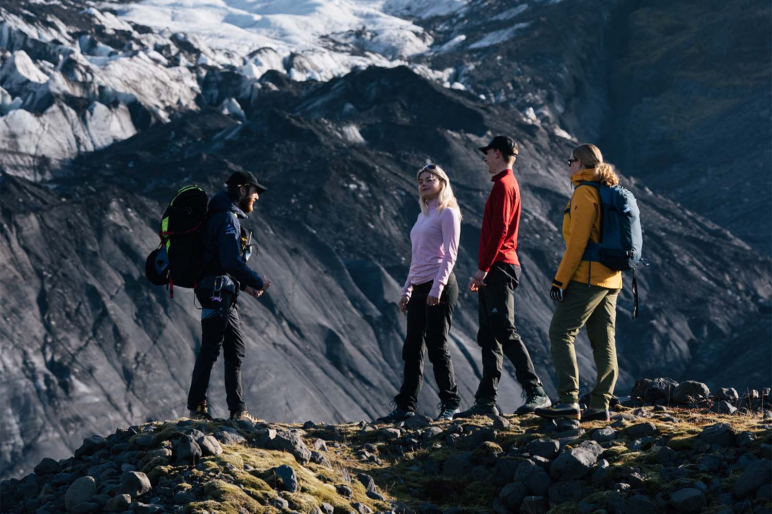 Icelandic weather can be unpredictable, so it’s best to dress in layers. Start with a thermal base, then add something warm like fleece or wool, and finish with a waterproof jacket. Instead of jeans, wear hiking or outdoor pants with a waterproof layer on top. Sturdy hiking boots with ankle support are required, and we offer rentals if needed. Sunglasses and sunscreen are a good idea too—the glacier can be bright, even on cloudy days.