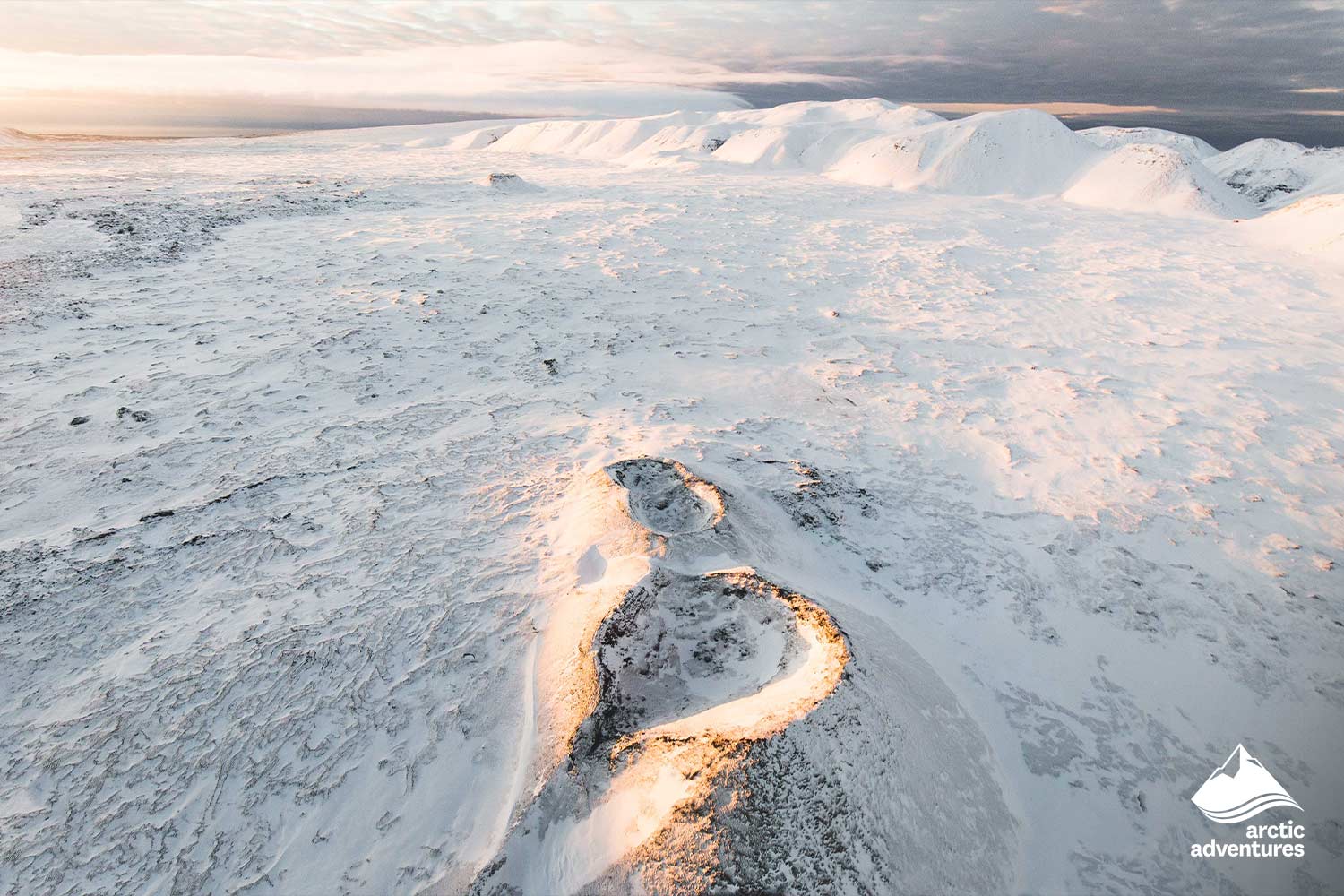 The second landing of this tour is in the remote valley of the Hengill geothermal area. You can only get to Hegill by hiking for a few hours, or by helicopter- much more convenient! This valley has hot springs and boiling mud pots that you can walk right up to and explore. It is a magical place that is beautiful all year round in any season, summer or winter.