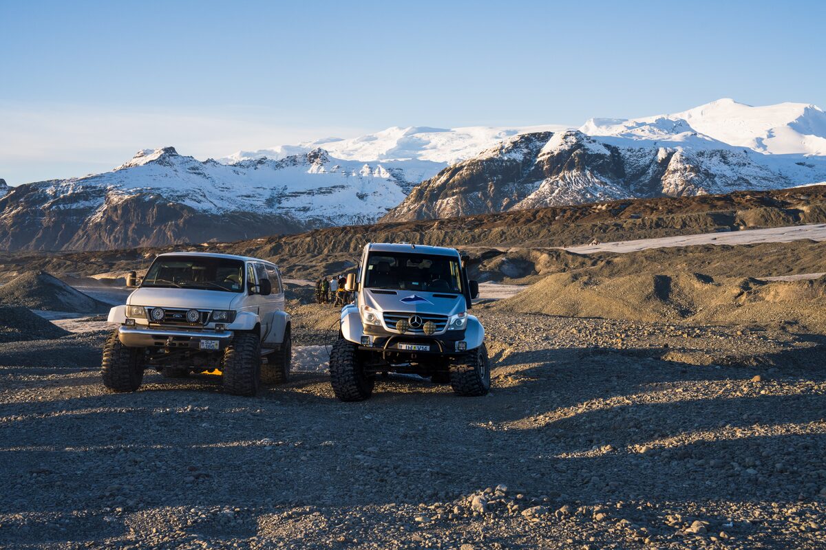 Our Super Jeeps can fit 14–18 passengers, depending on the tour. This makes it ideal for small group tours and families! For example, the Katla and Crystal Ice Cave tours use 14‑seaters, while larger models like those for our Northern Lights tours can fit up to 18. Either way, you’ll enjoy comfort, great views, and off‑road adventure. Discover group adventures with our Super Jeep Tours.