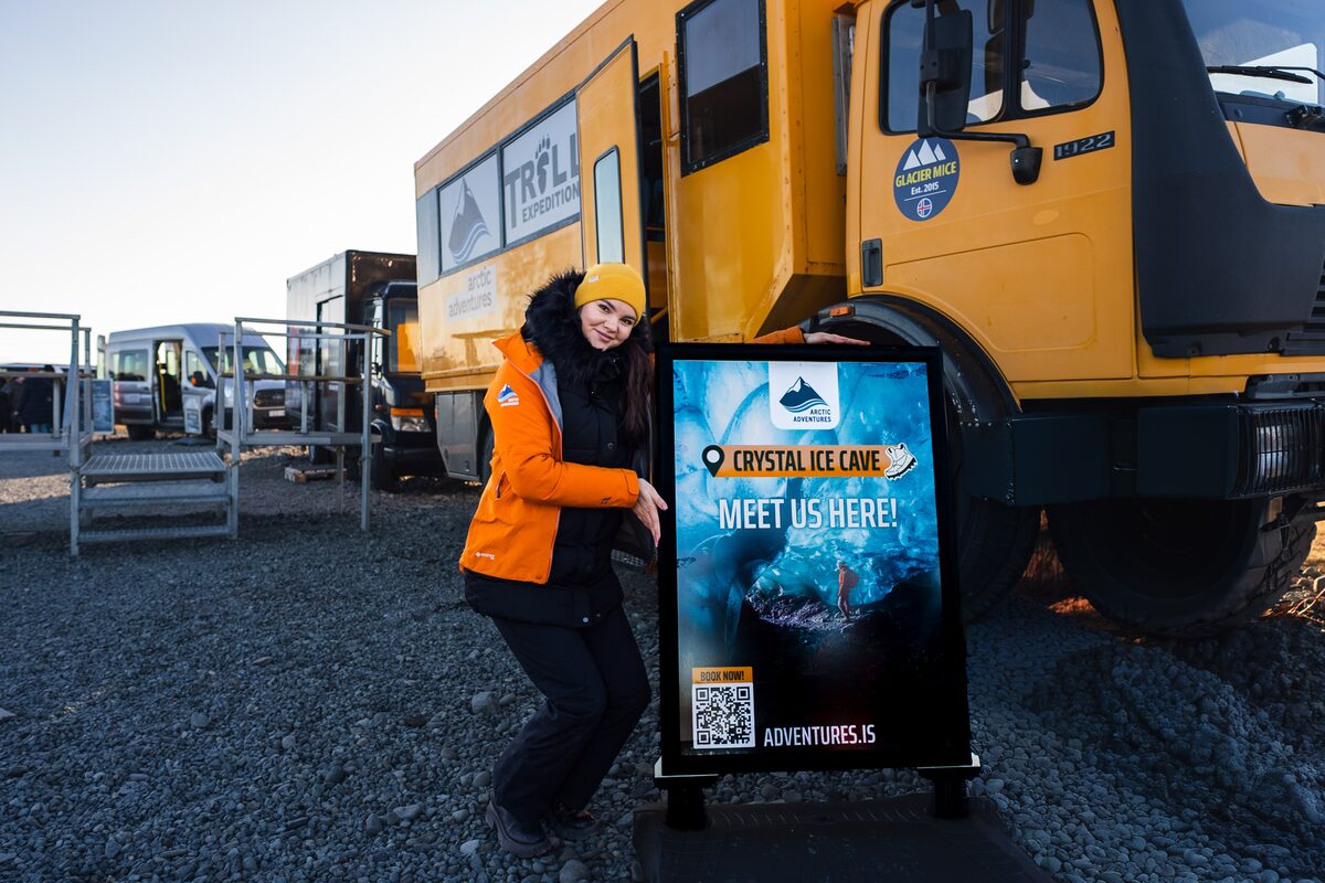 The Crystal Ice Cave tour departs from Jökulsárlón Glacier Lagoon and is up to 3 hours in duration. A large off-road jeep will take you to an ice cave located in Breiðármerkurjökull Glacier, an outlet glacier from Vatnajökull. This tour offers you the chance to venture inside one of Vatnajökul’s beautiful crystal ice caves and take photos of its picturesque crystal surroundings. You will then jump back on the super jeep which will return you safely back to Jökulsárlón.