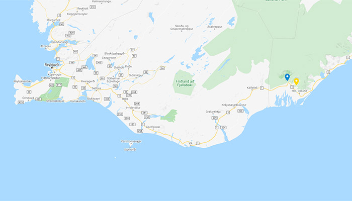 Please note: Skaftafell is located 327km (203 miles) from Reykjavik. The nearest towns to Skaftafell are Kirkjubæjarklaustur, 69km to the West and Höfn, 130km to the East.