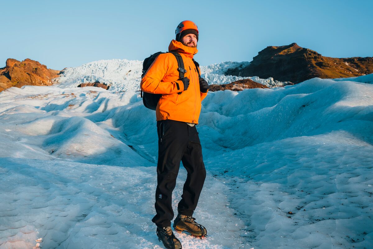 When glacier hiking you will be provided with an ice axe, crampons, harness and helmet. This will help you to complete the tour safely. The minimum shoe size to attach crampons is EU 35.