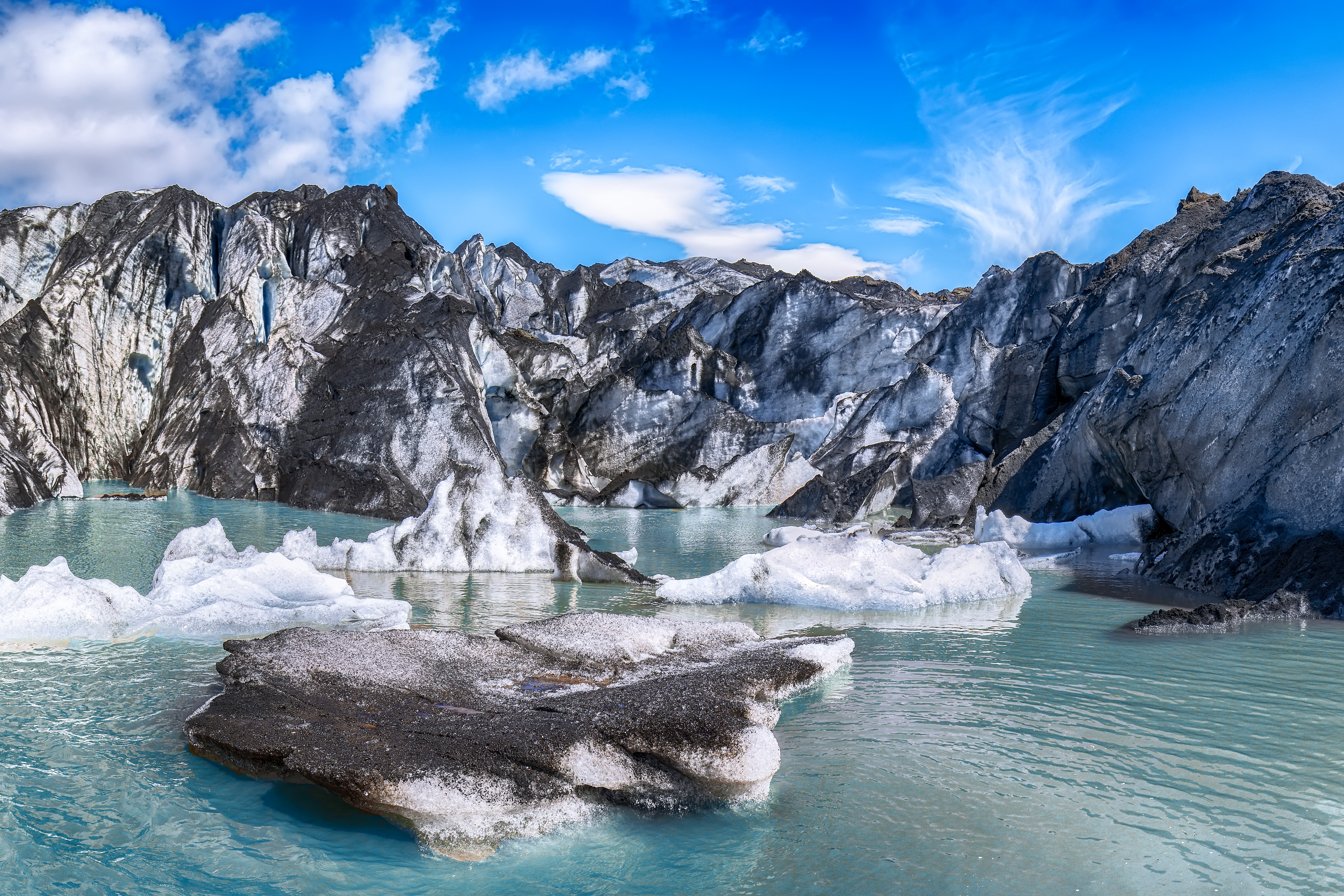 The tour begins when we gather together in the Sólheimajökull parking lot to meet your guide for the day and make the short walk to the lagoon. Once we arrive you will immediately be struck by the peacefulness of the place and the towering majesty of the glacier itself. Our friendly guide will then gear you up with all the kayaking equipment that you need, including a drysuit, along with a quick safety briefing and exposition on the best paddling techniques. We will then cast off and embark on our kayaking adventure.