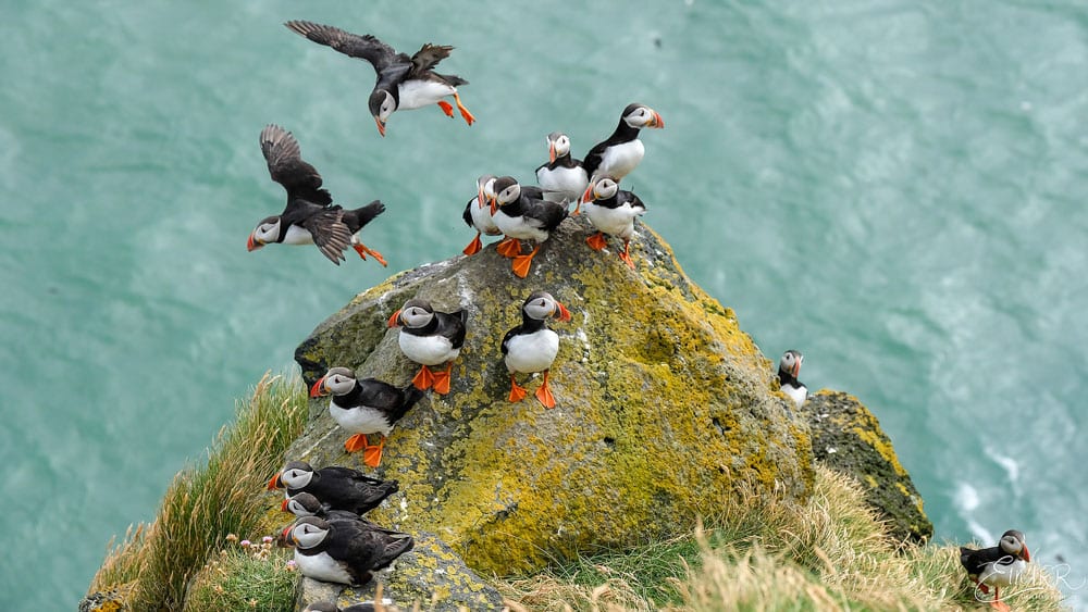 Iceland hosts between 8-10 million puffins and is responsible for 60% of the world’s Atlantic Puffin Population, making it the puffin watching capital of the world. They are known as ‘Lundi’ in Icelandic, although many locals know them by the affectionate nickname “prófastur”, which translates to ‘preacher’. Puffins are fairly unique amongst birds, due to the fact that they are monogamous, meaning that they pair for life. They also spend the majority of their life at sea, using the summer months to nest on land and breed, before heading back to their ocean life. They live for between 20 and 25 years, although the oldest recorded puffin reached the age of 38.