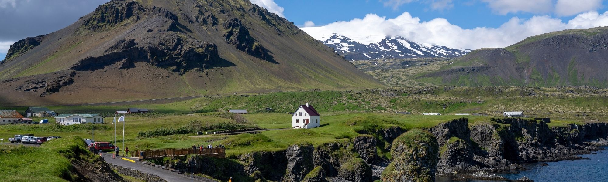 Head north from Reykjavik to reach the wonderland of Snæfellsnes Peninsula. Visit the country’s most photographed mountain, Kirkjufell, explore the glacier-capped volcano Snæfellsjökull, hike the sea cliffs of Arnarstapi, and see Búðir's Black Church in lava fields.