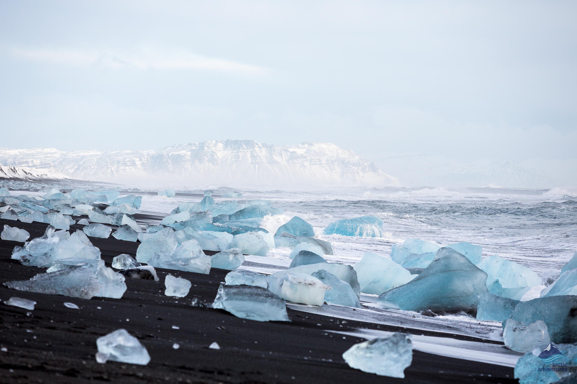 The Diamond Beach is a black sand beach next to Jokulsarlon glacier lagoon. It is a beach where icebergs have drifted onto the shore creating the illusion of huge diamonds.