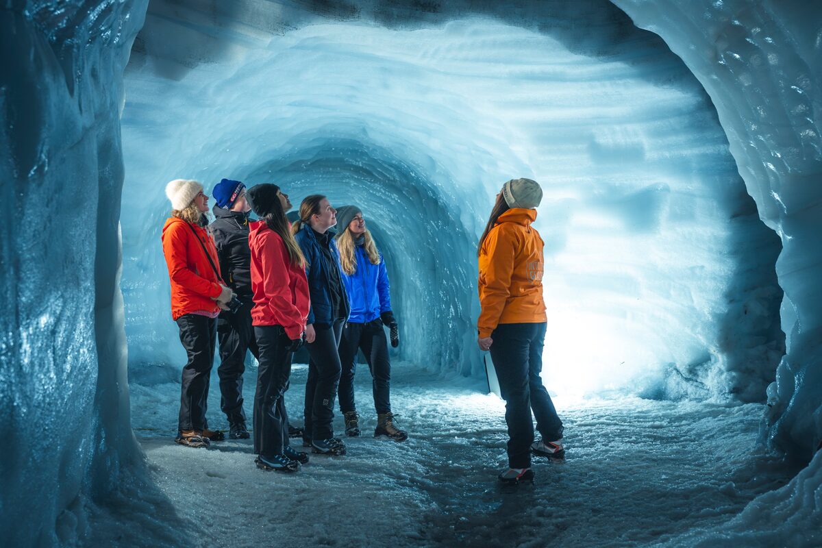 Depending on the tour combination you book, your next stop will be one of three incredible attractions. Whether you’ve always dreamed of walking through a majestic ice tunnel, exploring a natural lava cave, or relaxing in a warm geothermal pool, choose your preferred option when booking, and we’ll make it happen!