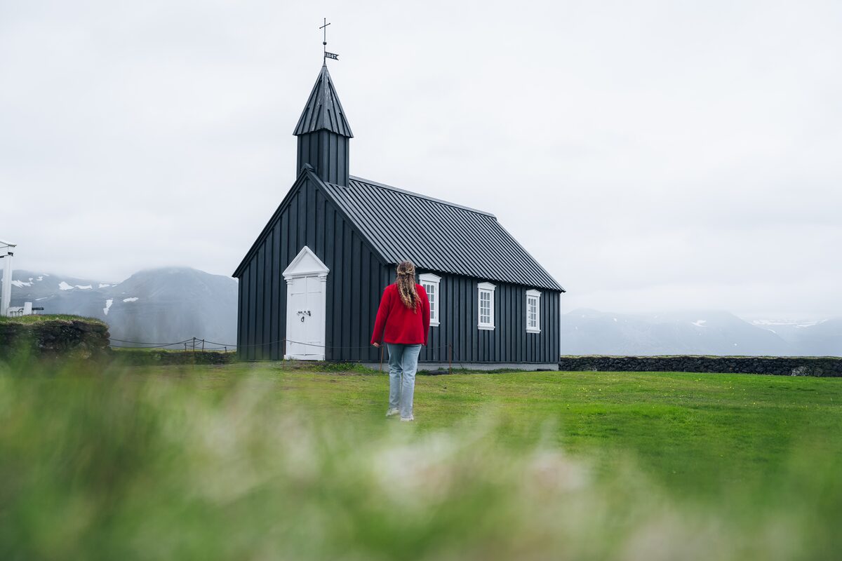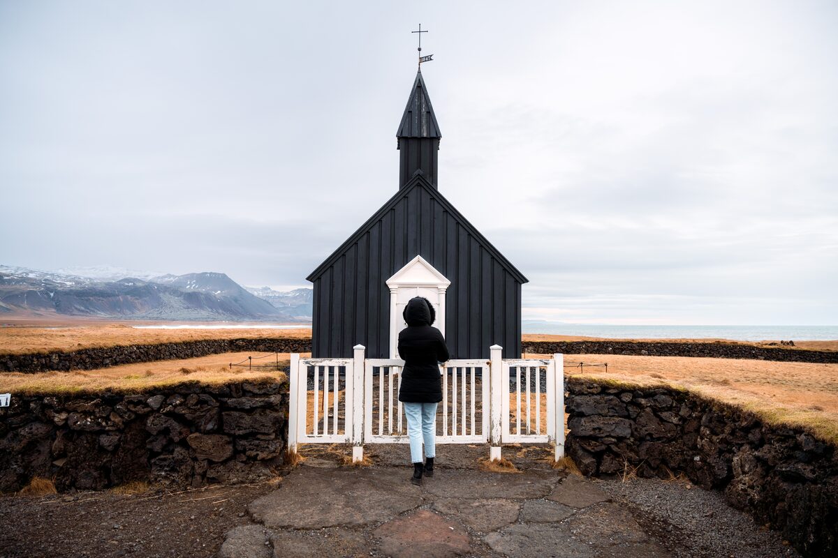 Just east of Arnarstapi, we stop at Búðakirkja, a striking 19th-century black wooden church set against the dramatic Icelandic landscape. This simple yet beautiful church has become an iconic symbol of the peninsula.