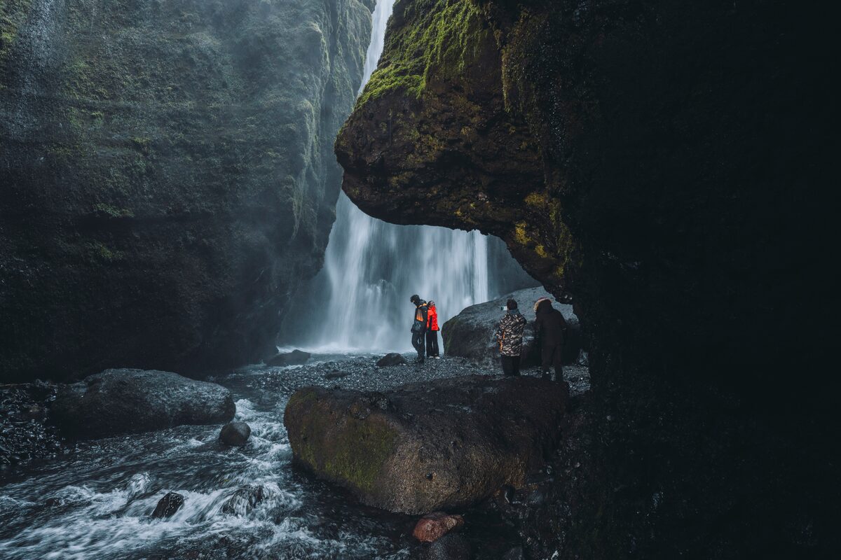 Our final stop is Seljalandsfoss, a waterfall unlike any other. A hidden pathway lets you walk behind the cascading water, giving you a completely different perspective of the falls. The trail can be slippery, but the thrill of standing inside a waterfall makes it worth it—just be prepared to get a little wet!