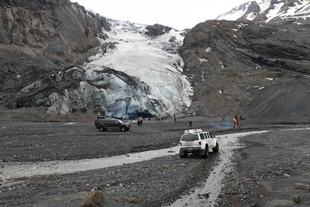 This Super Jeep action tour begins on route to Gígjökull glacier, one of two main outlet glaciers of Eyjafjallajökull, the massive volcano that erupted in 2010. Before reaching the glacier guests will be able to walk up to and behind the famous Seljalandsfoss waterfall in addition to a lunch break in a spectacular hidden canyon. On the way to the Gígjökull glacier, our travelers can expect sensational views with surrounding hot lava rocks and volcanic ash. Included in our route back to Reykjavik are the beautiful black sand beaches and thundering Skógafoss waterfall.