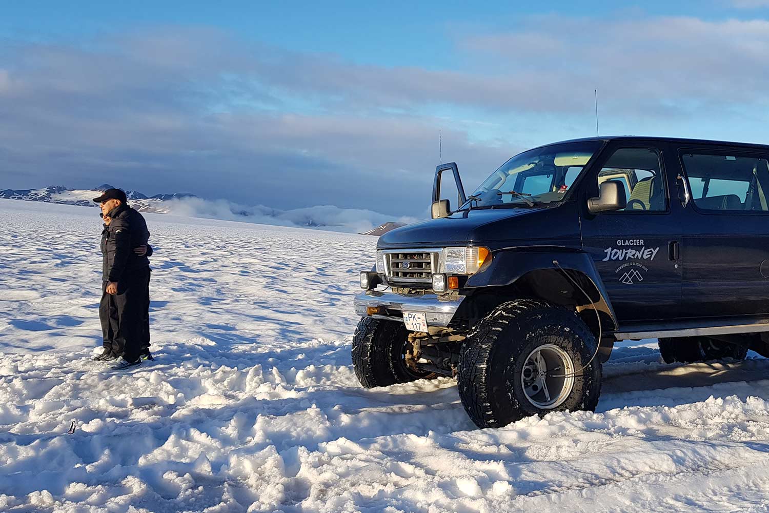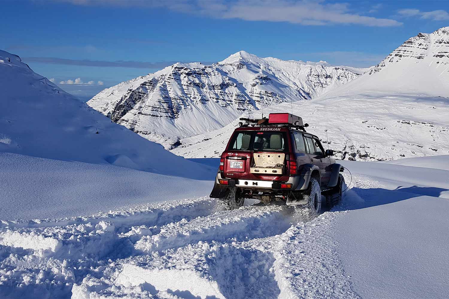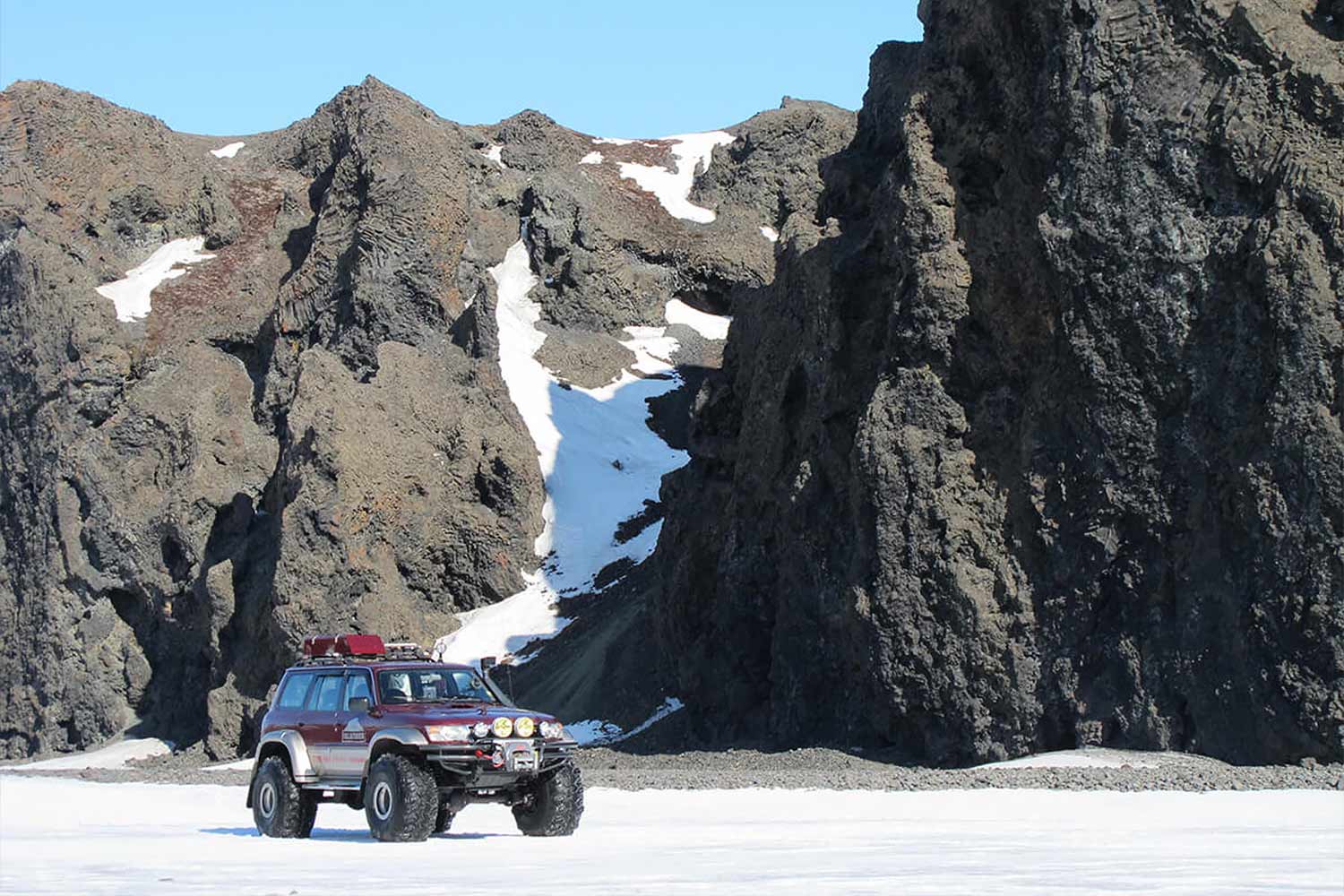 This exhilarating glacier super jeep tour will take you into the pristine wilderness of Vatnajökull, the largest glacier in Europe. Travel by sturdy and comfortable Super Jeep high on Vatnajökull through stunning mountains and Glacier views. Explore the heights of glorious Vatnajökull for a once-in-a-lifetime experience, on the biggest icecap in Europe.