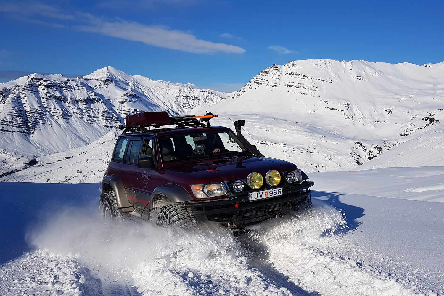 A Super Jeep is a highly modified vehicle equipped with 38" to 50" tires and a robust suspension system, uniquely designed to handle Iceland's diverse terrains and conditions. Dive deeper into the world of Super Jeep Tours.