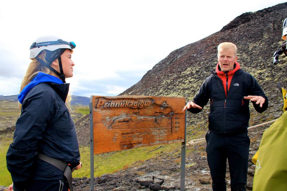 All equipment and procedures have been tested extensively and approved by the administration of Occupational Safety and Health in Iceland. Everyone that goes down into the crater will have a harness and required to use a helmet at all times. All guides are experienced mountain guides and cave explorers and will be with you at all times.