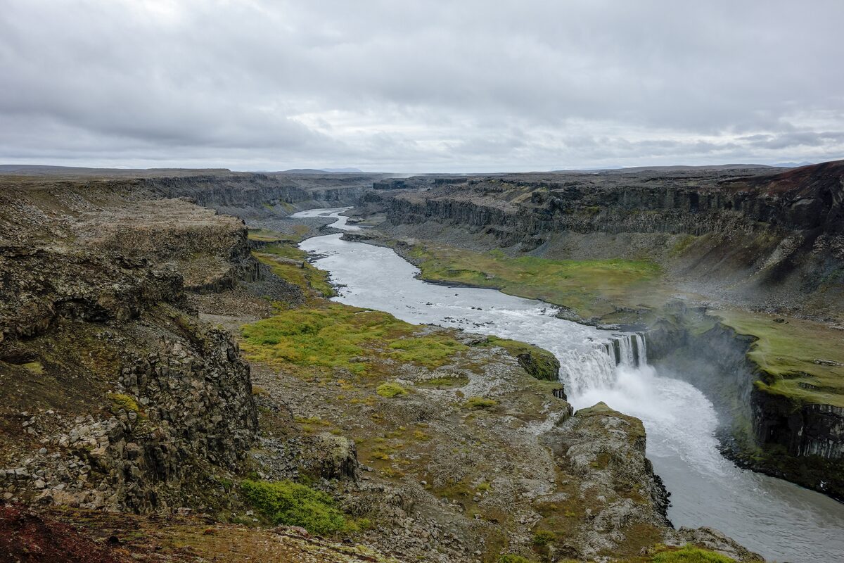 Jökulsárgljúfur is a broad canyon through which runs Iceland’s second-longest river Jökulsá River. Jökulsárgljúfur means “Glacial River Canyon” in Icelandic. The canyon is best known as the home to the spectacular Dettifoss Waterfall. It also happens to be a very popular hiking destination. Here you’ll find a good campsite.