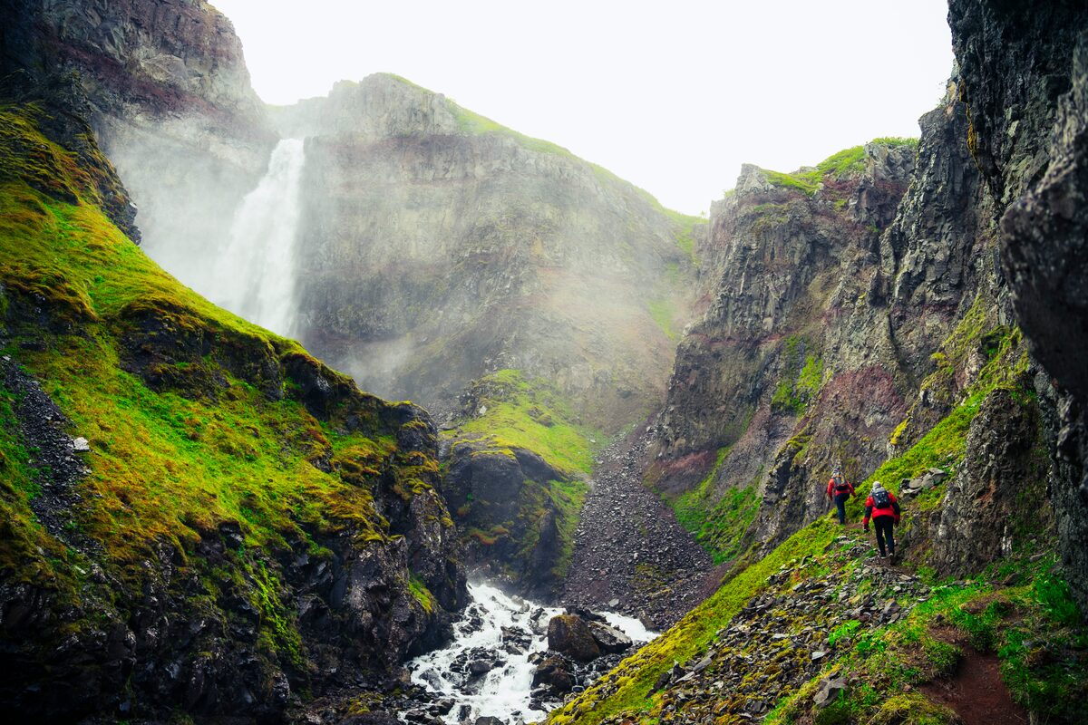 We continue to the Gervidalsá valley stream, where a gentle flow of water cuts through the rocks and marks our last stop within the Westfjords. The final highlight of the tour awaits in West Iceland: Grábrók crater. A walk along its rim reveals wide views of surrounding lava fields and volcanic formations—a grand final scene before we return to Reykjavík.