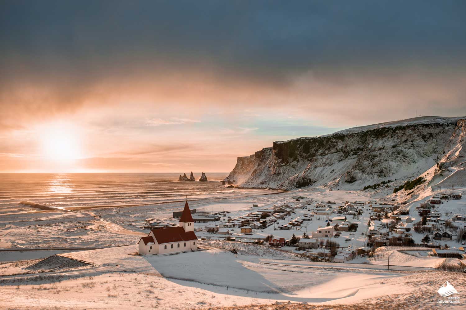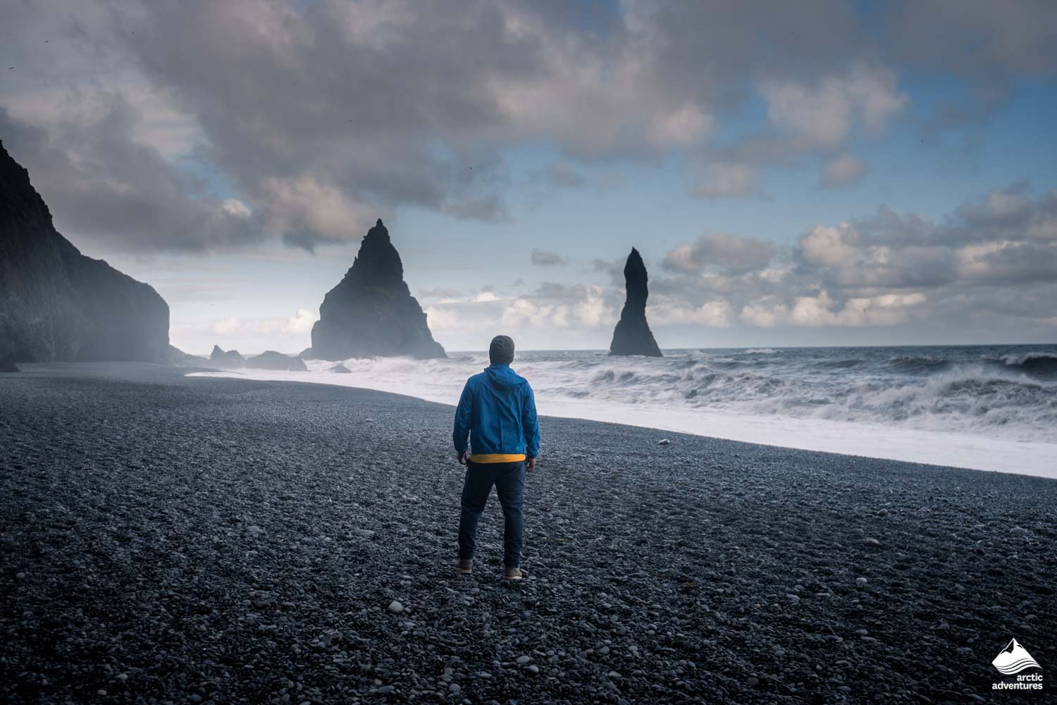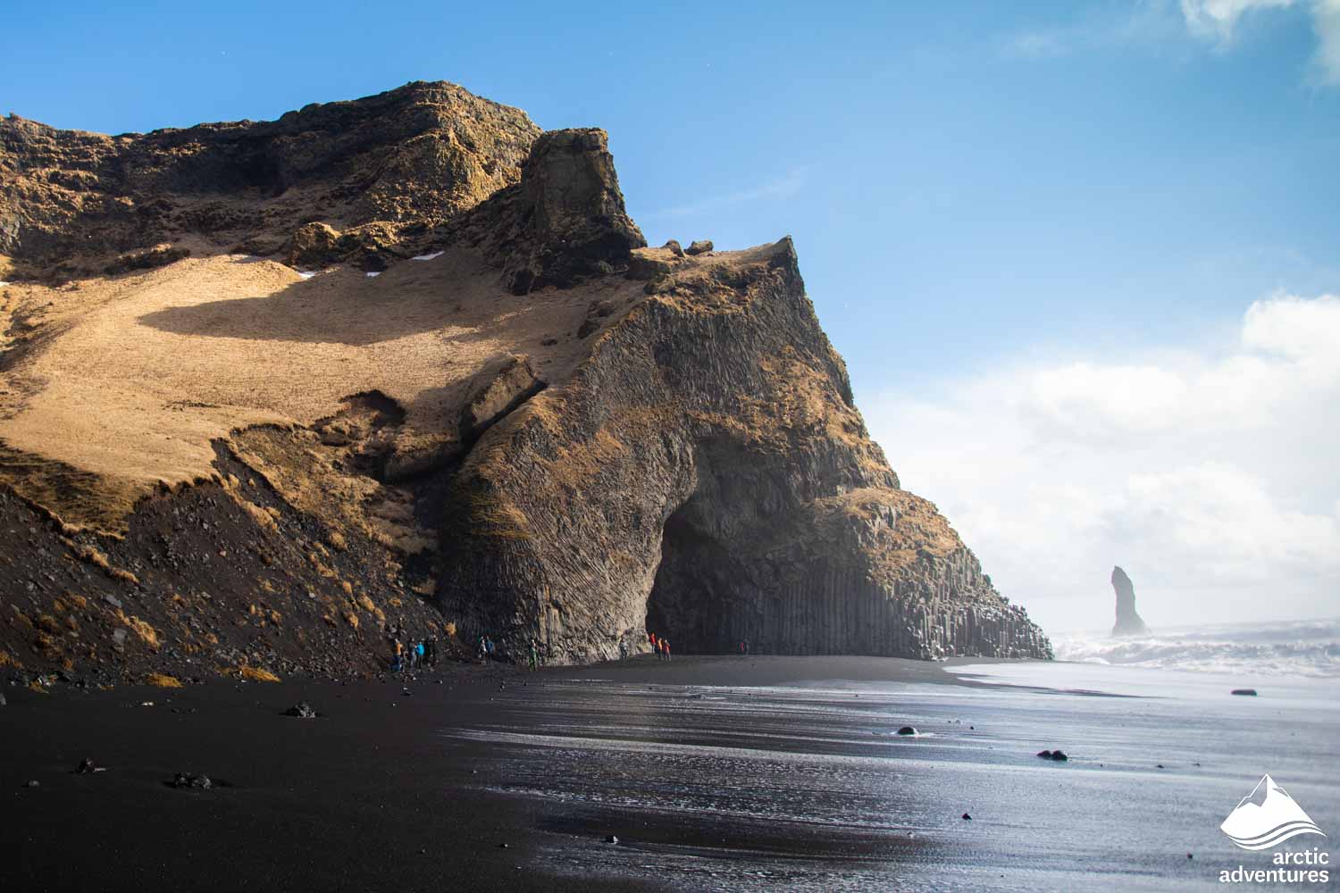 We continue along the South Coast route to the famous Reynisfjara black sand beach. Just offshore, catch a peek at the majestic Reynisdrangar peaks that shoot out of the sea.