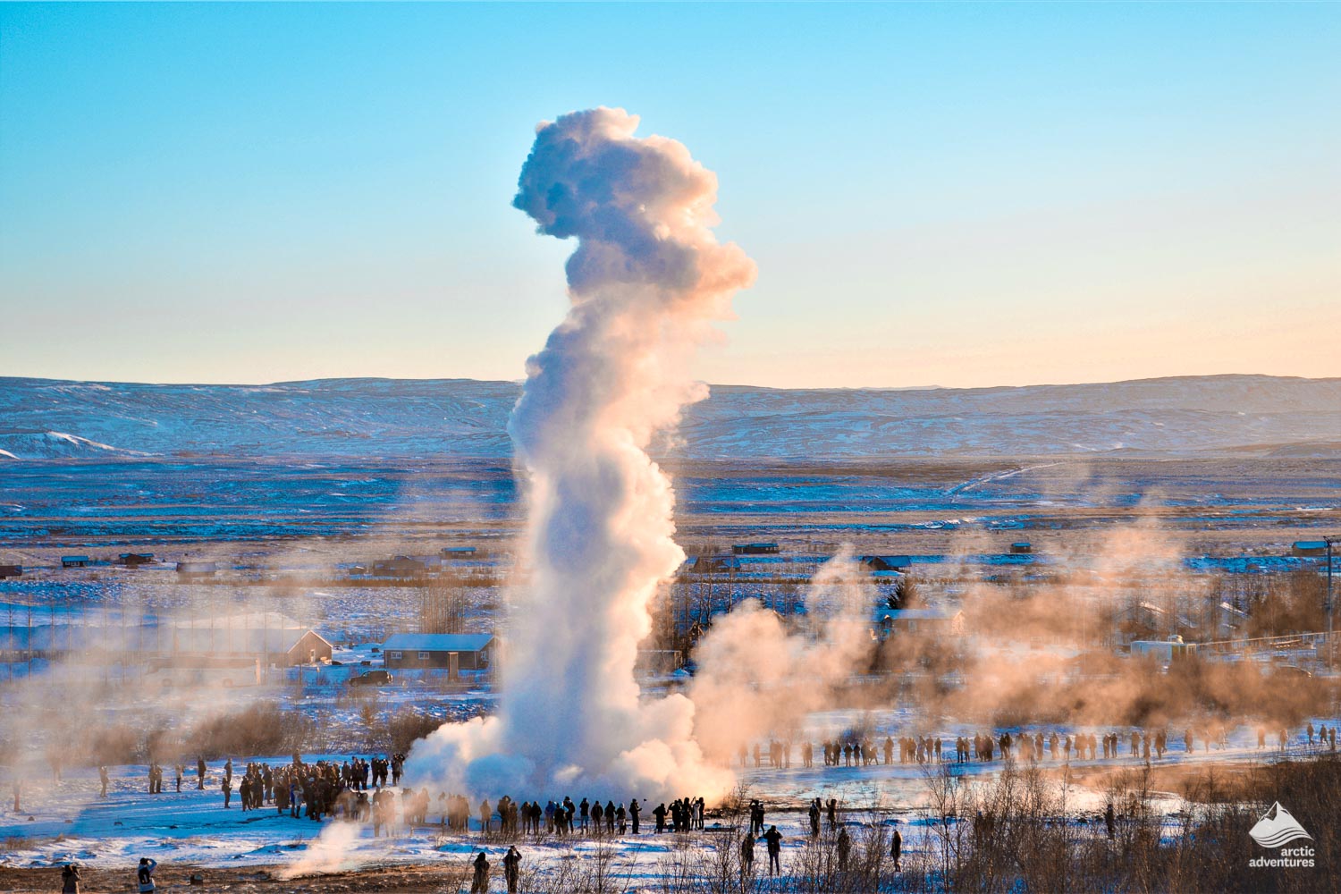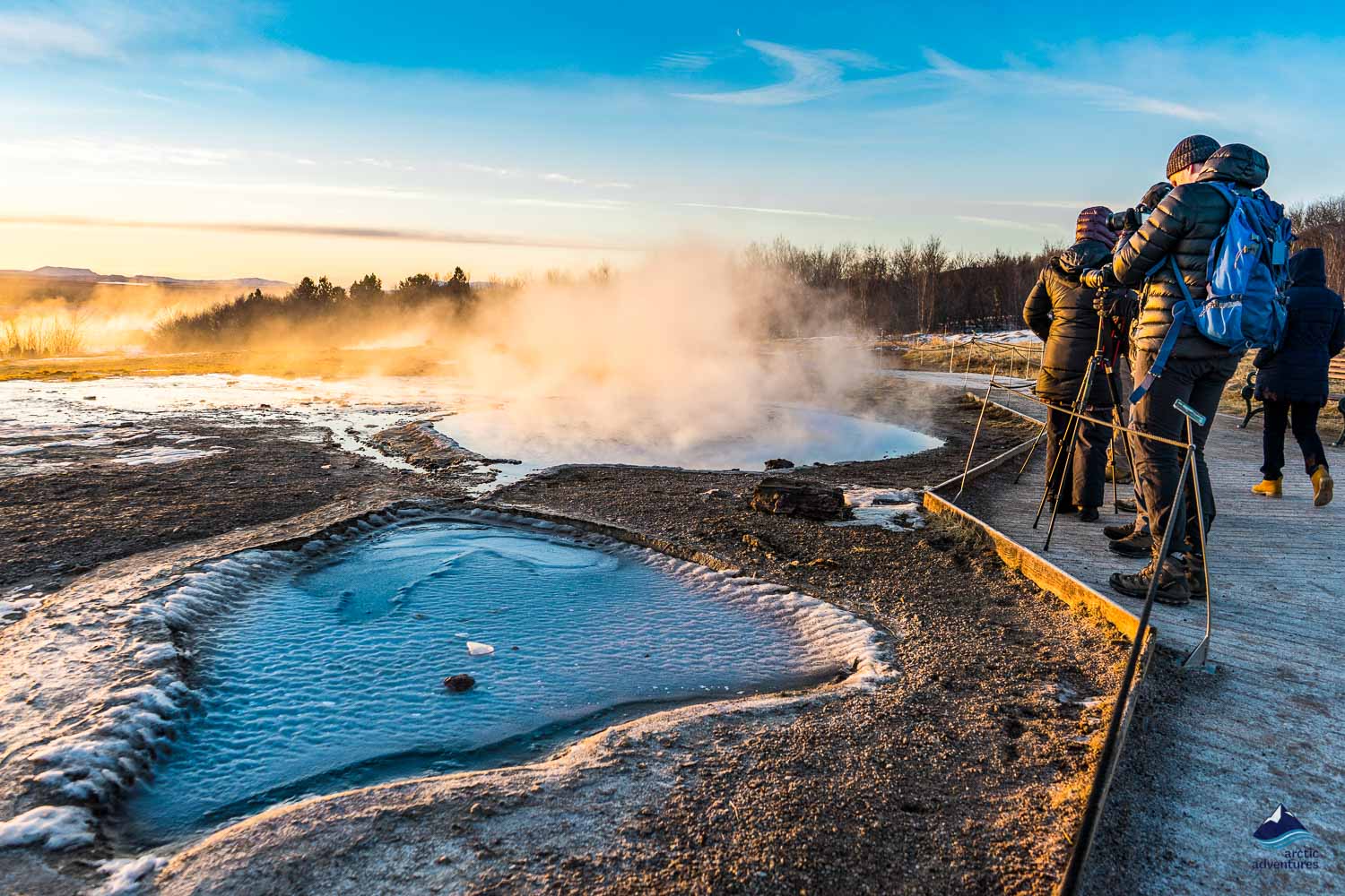 On the last leg, witness Iceland’s most active geysers at Geysir Geothermal Area. Strokkur Geyser shoots water 40 meters in the air every 10 minutes.