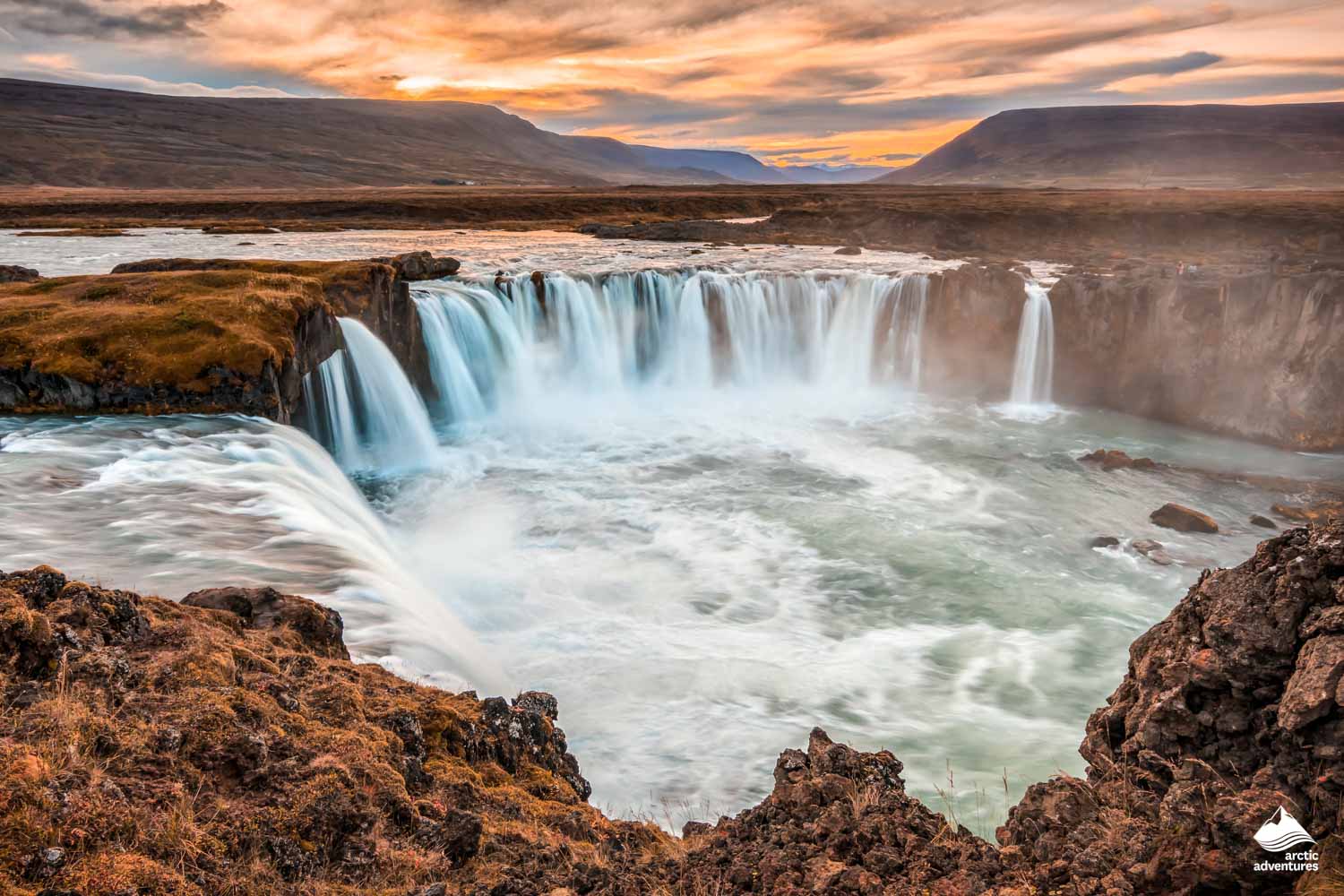Our last stop before we continue to Eyjafjörður is Goðafoss, a historic waterfall. You’ll spend the night at Berjaya Iceland Hotels.
