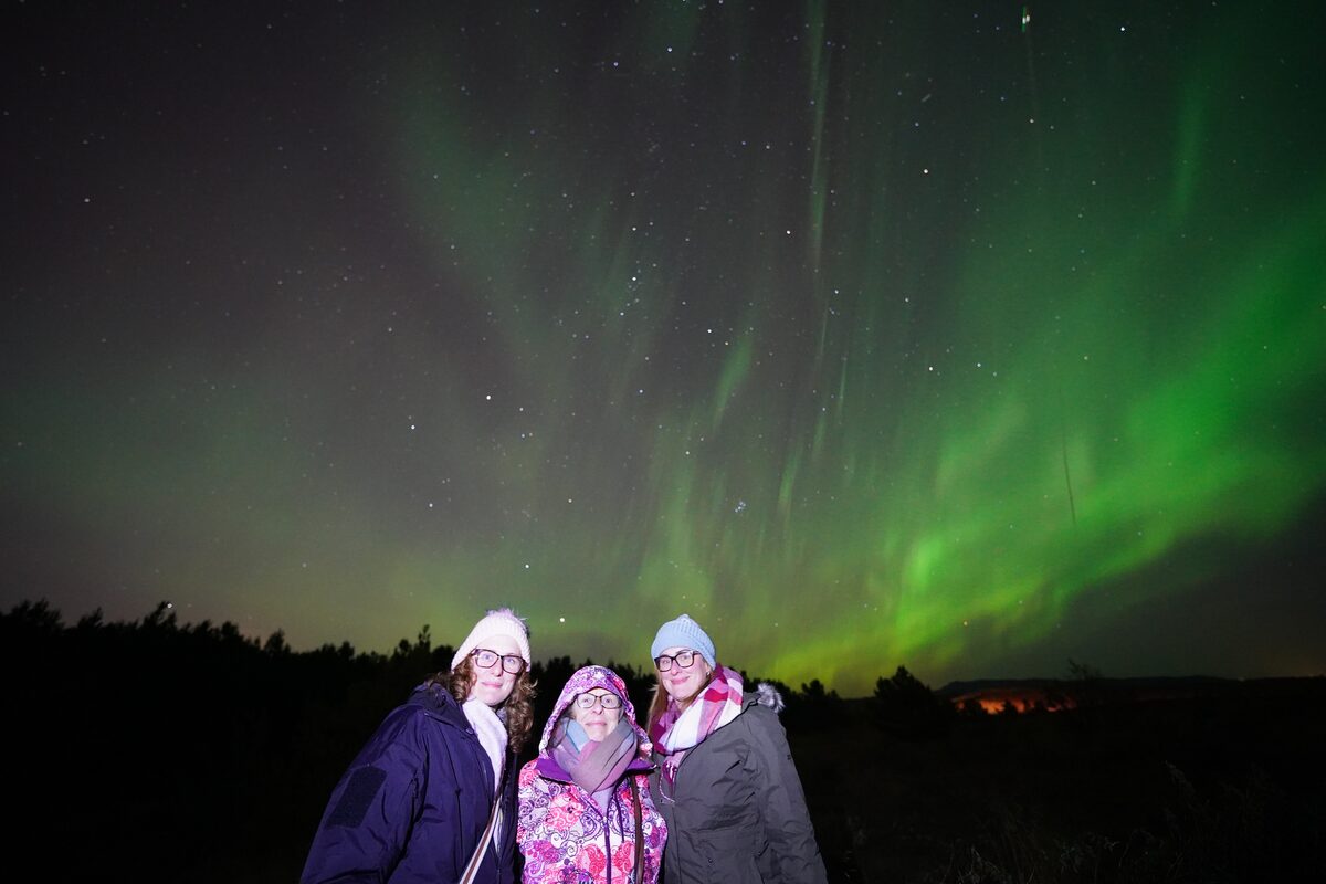 The Northern Lights are a natural phenomenon; therefore, we can unfortunately never promise they will be seen. Their appearance depends upon atmospheric and weather conditions. The best time to see them is between September and March when it’s dark and clear. The sky needs to be as dark as possible, so the best places to see them are well away from city lights (that’s where we are going!).