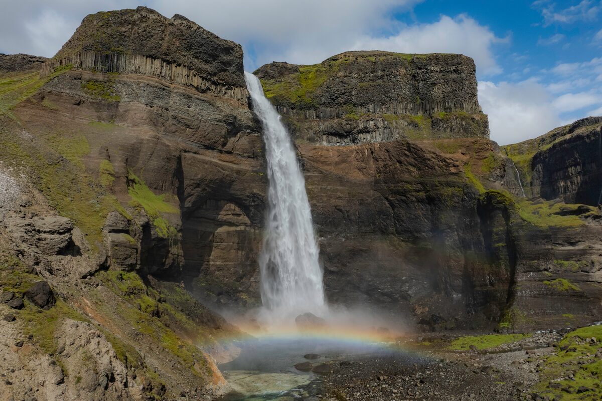 The eruption and the ash coming from it caused famine in Europe, which eventually altered history as it’s said that the famine was the beginning of the French Revolution. We'll continue to drive around the highlands, making a couple of shorter stops before coming back to the main road. There we’ll make a stop at the small village Kirkjubæjarklaustur, where you have free time to walk around. You can check out Systrafoss Waterfall, Systrastapi Rock or Kirkjugólf (Church Floor), which are basalt columns and stone slabs. From there, it's just a short drive back to the hotel.
