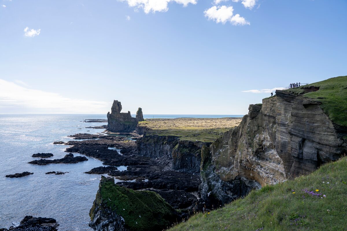 One of the oddest natural attractions on the peninsula can be seen from kilometers away. The strange, giant Lóndrangar sea stacks dominate the landscape even from a distance. The stacks are 75 and 61-meters (246 and 200-feet) high and together look like a dark castle. It is said that they belong to the elves living in the area so no one dares disturb them.