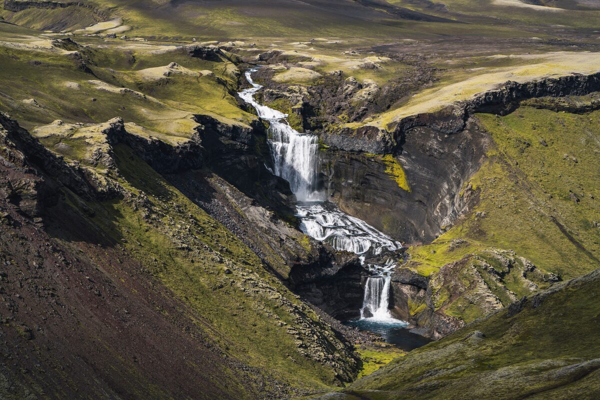 From Hrafntinnusker, we descend into the gullies of Jökultungur, a geothermal wonderland filled with steaming hot springs and bubbling mud pools. Over time, geothermal activity has painted these gullies in vivid shades of yellow and red, contrasting beautifully with the pale sand-toned peaks around them. At the top of Jökultungur, we’ll take in breathtaking views of the Fjallabak region and, weather permitting, catch glimpses of the Mýrdalsjökull, Eyjafjallajökull, and Tindfjallajökull glaciers.