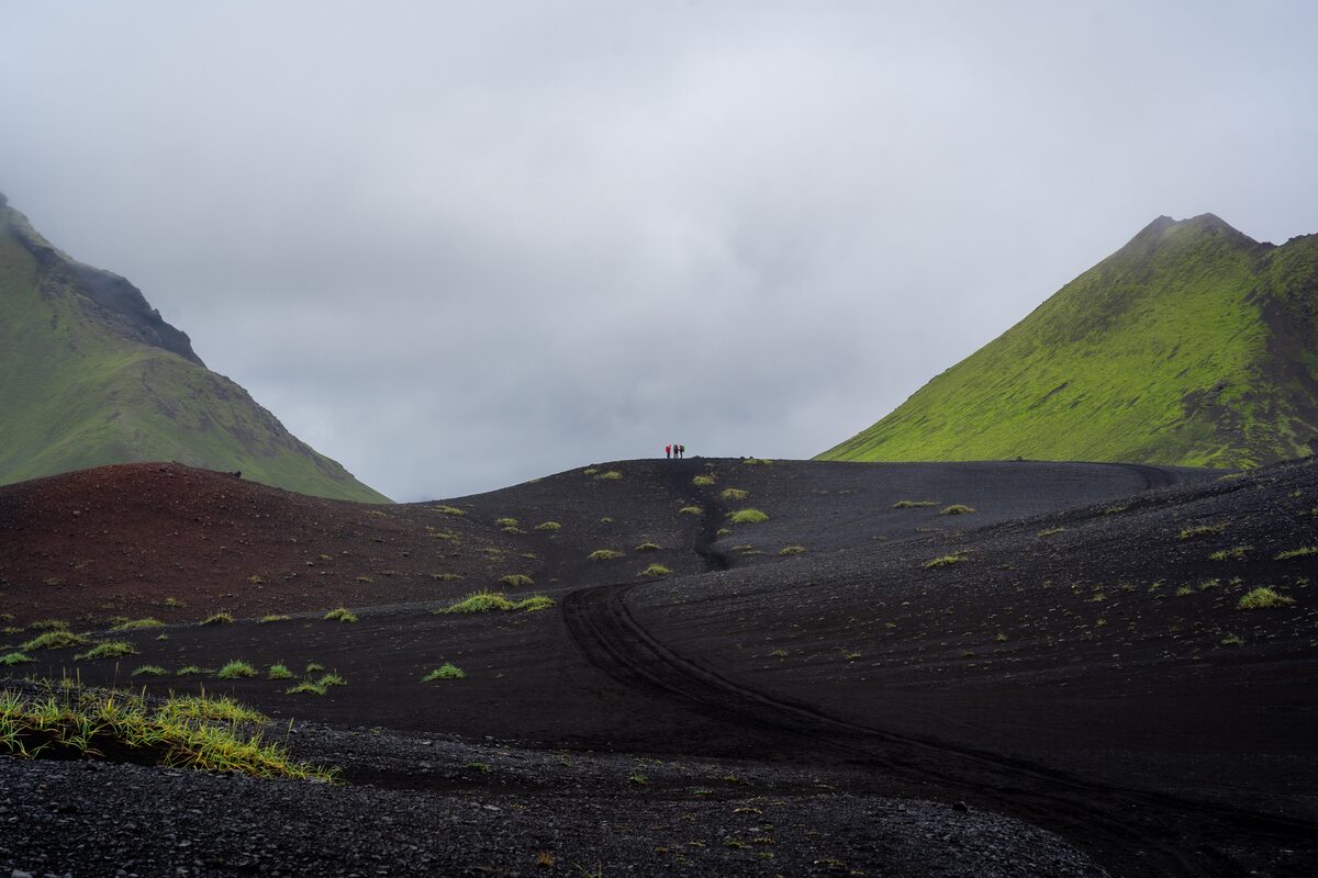 After a hearty breakfast, another exciting day of trekking awaits. The journey begins with a stream crossing, before we head into the vast black sand desert of Mælifellssandur. Along the way, we’ll pass the striking volcanoes of Stórasúla and Hattafell. Their green moss-covered slopes stand out beautifully against the dark rocks.