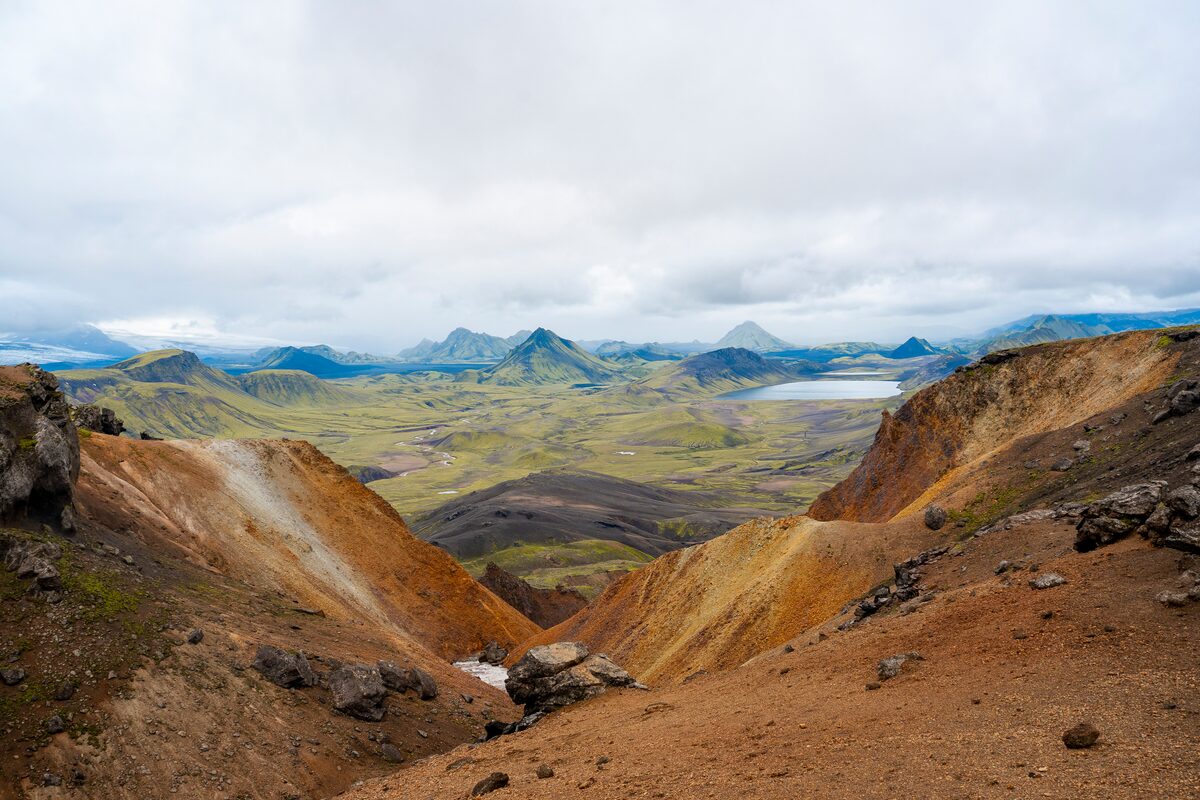 The Laugavegur trail starts in the Landmannalaugar geothermal area. Your group will spend the first day on a warm-up hike to get your legs moving and ready for the days ahead. This scenic loop winds through some of the area’s most unforgettable terrain, including the surreal Laugahraun lava field, the colorful Grænagil gorge, and the impressive Bláhnjúkur volcano. It’s an excellent way to feel the rhythm of the trail while taking in the raw beauty of the first attractions on our way.