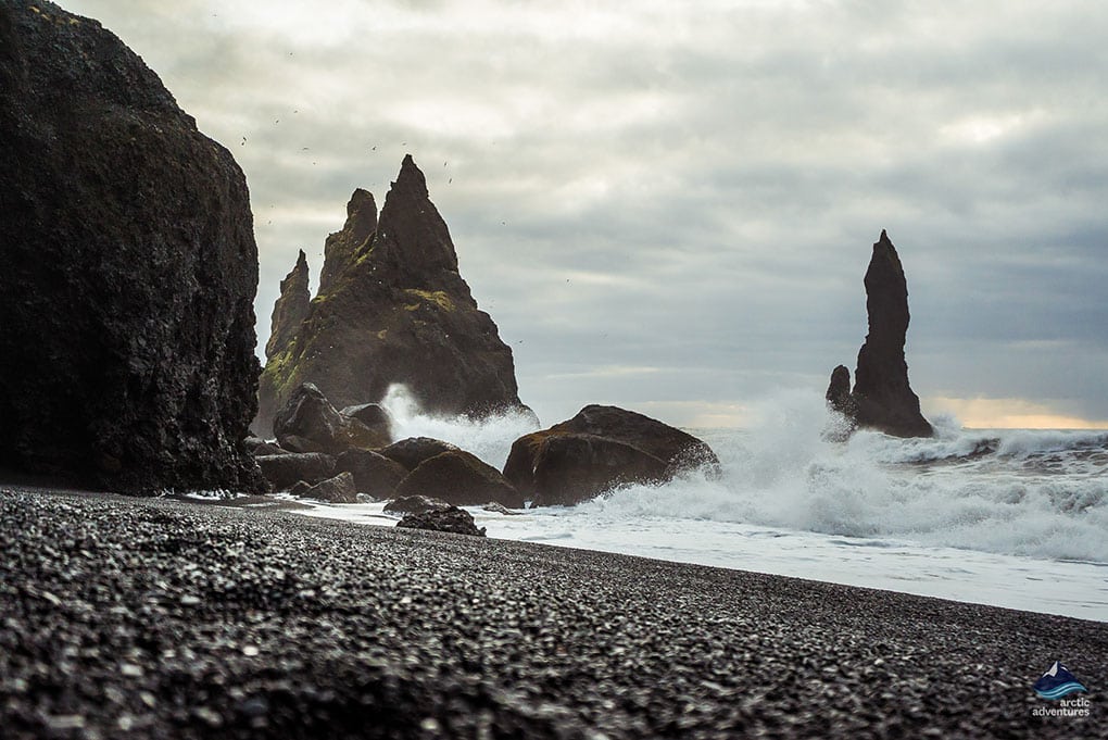 As you continue toward the mighty Solheimajokull glacier, we recommend stopping off at Dyrholaey, a craggy rock arch that is like a deep blue window into the sea.You’ll get to marvel at the magnificent black beach at Reynisdrangar, where white-crested waves contrast beautifully with the dark volcanic sands. Stunning basalt cliffs have been cut into incredible cylindrical rock formations. The unique landscape will leave you breathless. Another option is stopping off at the picturesque village of Vik, which is nestled at the foot of a mighty glacier.