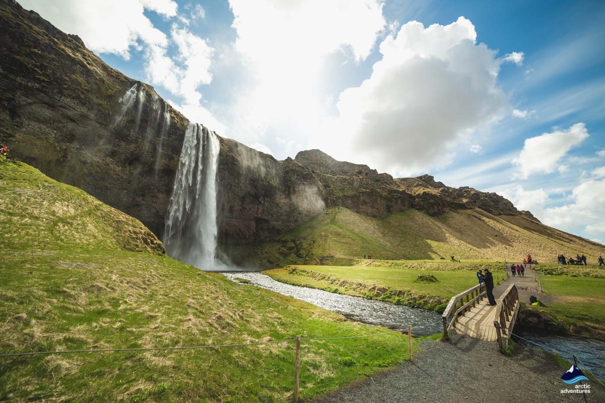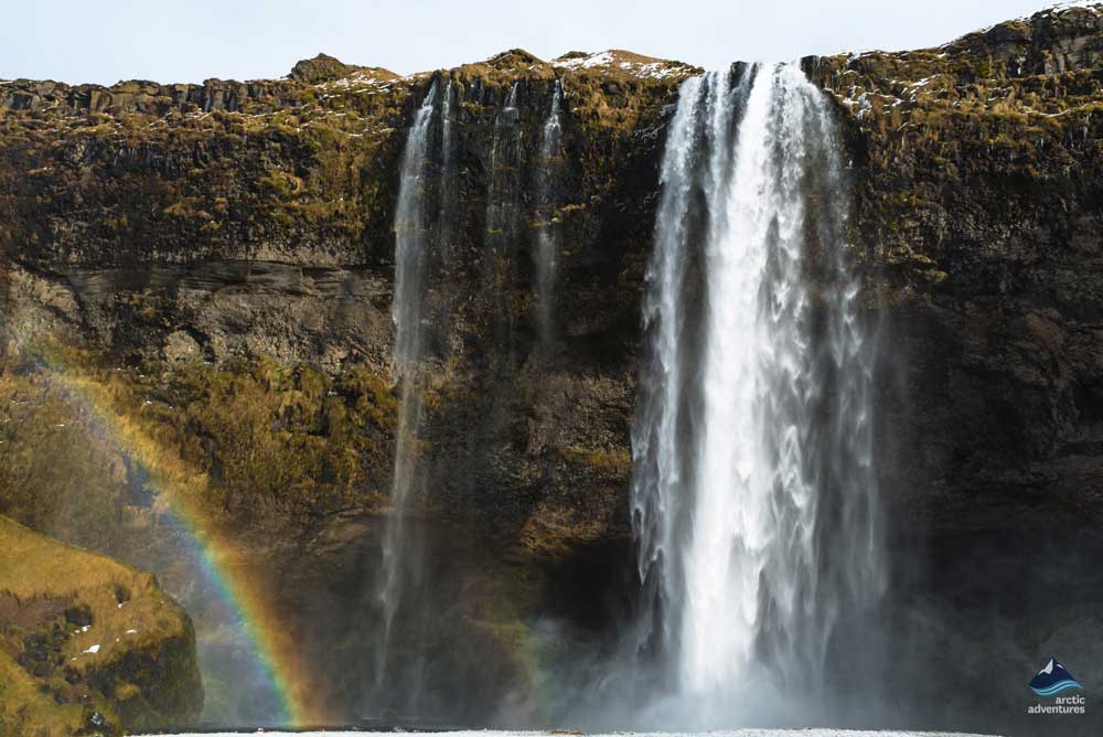 We recommend that you begin at the Seljalandsfoss waterfall, which is famous for its cylindrical jet of powerful water that crashes down into the valley below. Its unique cave allows visitors to travel behind the fall and enjoy it from a completely different perspective.